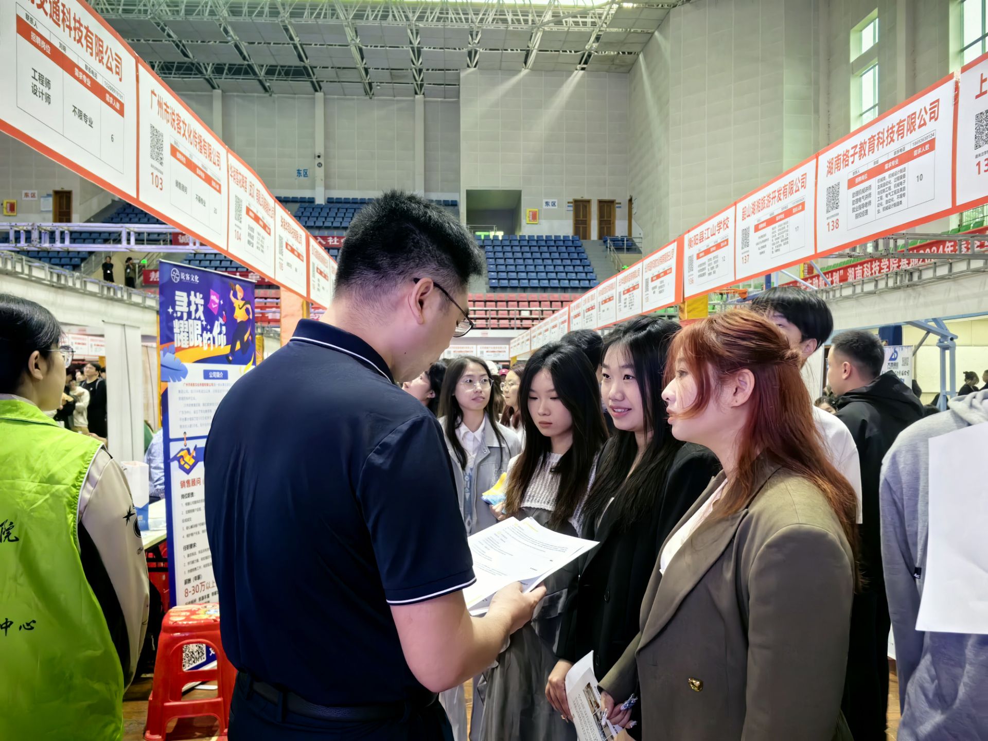 本网讯 2024年4月18日上午9点,华体会官方版网站登录入口在体育馆成功举行2024年春季综合类双选会。为更好地帮助毕业生寻求就业岗位,美术与艺术设计学院院长张建利、党总支书记王博、党总支副书记胡敏辉、毕业班辅导员李国碧、大三辅导员黄胜老师一齐参与招聘会现场对毕业生们进行暖心指导与服务。