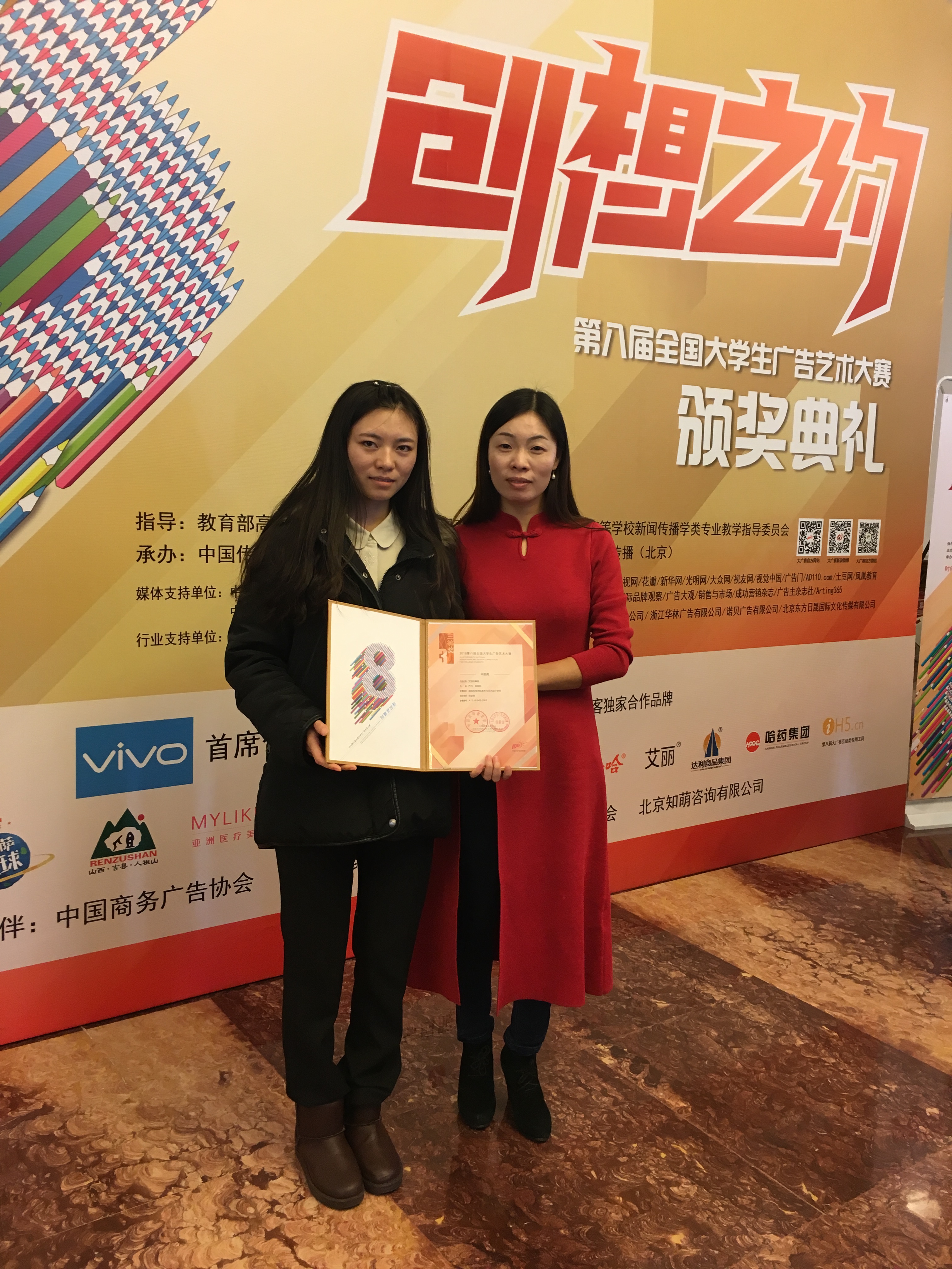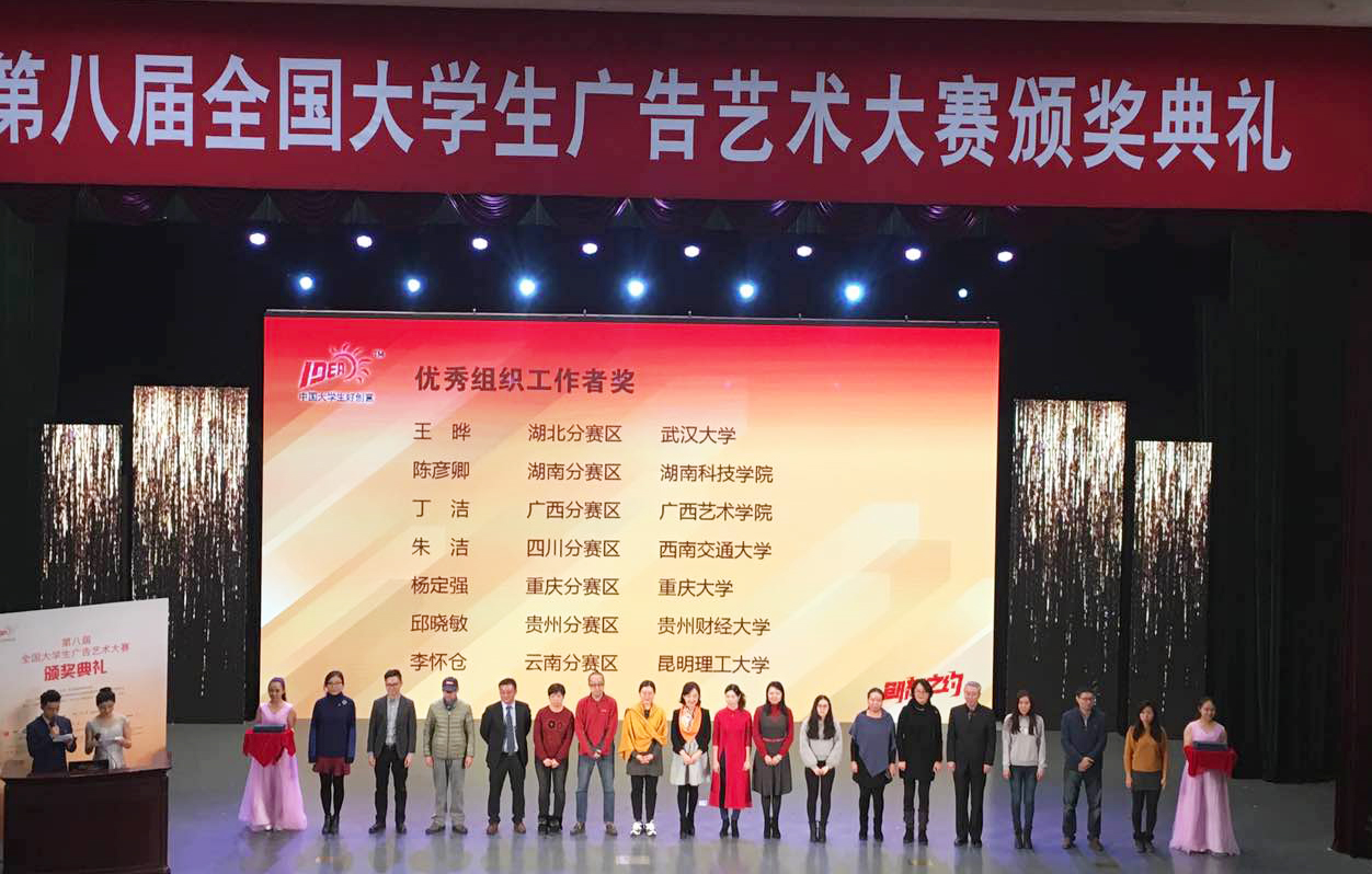 2016年11月27日,教育部学科竞赛第八届全国大学生广告艺术大赛颁奖典礼暨第九届全国大学生广告艺术大赛启动仪式在全国政协礼堂隆重举行,全国千名嘉宾代表、获奖师生齐聚北京,共襄盛举。据悉,该赛事历经5个月的角逐,全国2311所院校80万学生参赛、36万件参赛作品参评, 大赛竞争异常激烈。我校美术与艺术设计学院积极备战,成功举办了第八届全国大学生广告艺术大赛华体会官方版网站登录入口选拨赛;分别邀请了相关命题企业单位(披萨星球市场部经理、iH5市场总监)及学界专家到校宣讲选题和专题辅导。在此次大赛中美术与艺术设计学院学生严丹、赵铭钰创作的平面类作品《艾丽的舞蹈》获国家级三等奖,另外还有1项平面类作品和3项视频类作品荣获国家级优秀奖。此外,在湖南赛区,我校共获得4项一等奖,9项二等奖、12项三等奖、8项优秀奖的优异成绩,同时我校还获得“湖南省分赛区优秀组织奖”,陈彦卿副教授也光荣地获得了“全国优秀组织工作者”的荣誉,各类奖项均创下历史最好记录。