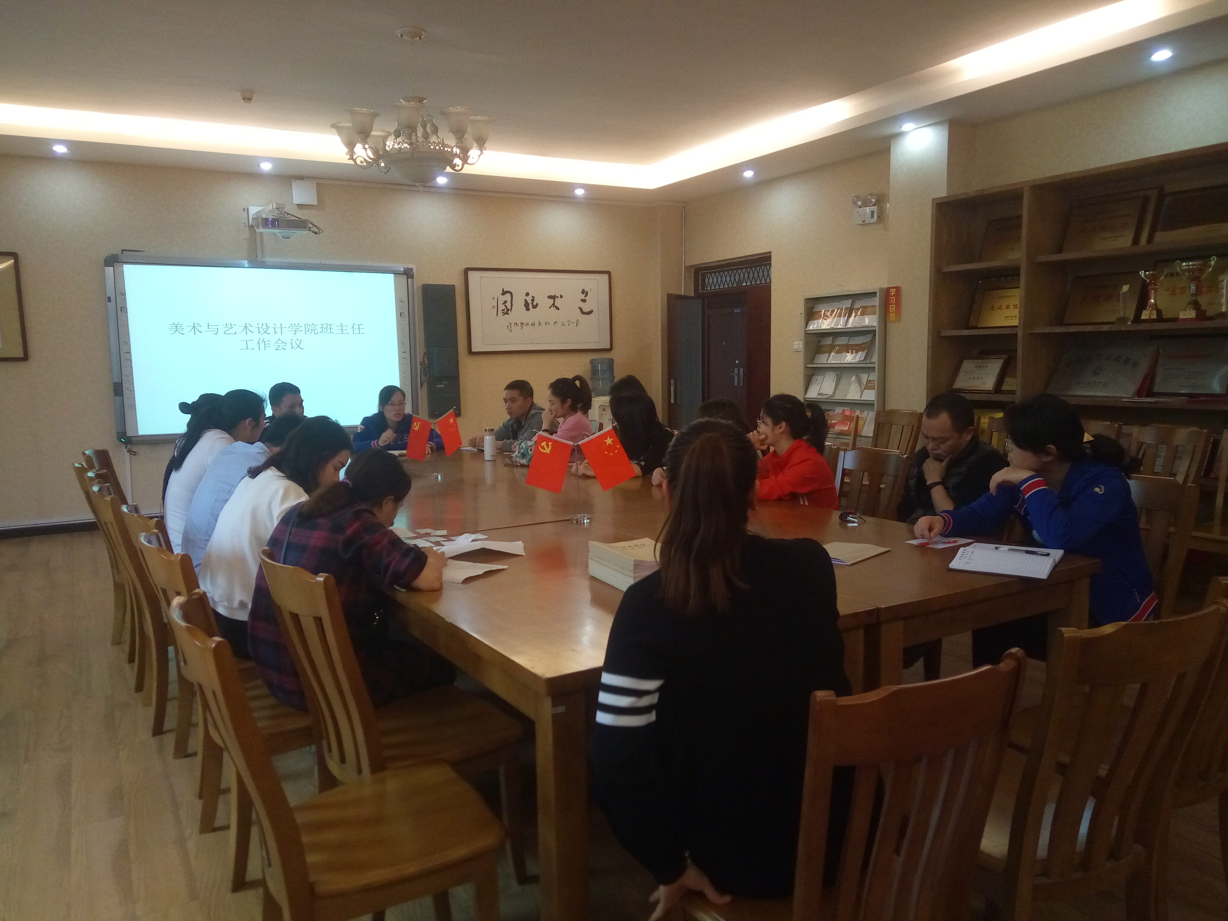 刘书记首先对各位班主任的辛勤工作表示感谢。刘书记强调开展工作中要充分利用归纳判断学生信息员提供各种情况,及时总结工作经验,有艺术性的开展工作。刘书记布置了近期重点工作:针对征兵入伍的宣传工作进行大力支持与动员;加强对于寝室卫生的管理并巩固成果;学生宿舍卫生和违章电器使用排查;美院公众号的建设各个班主任老师在各个班级进行宣传;召开国家安全主题班会以及毕业生的管理。