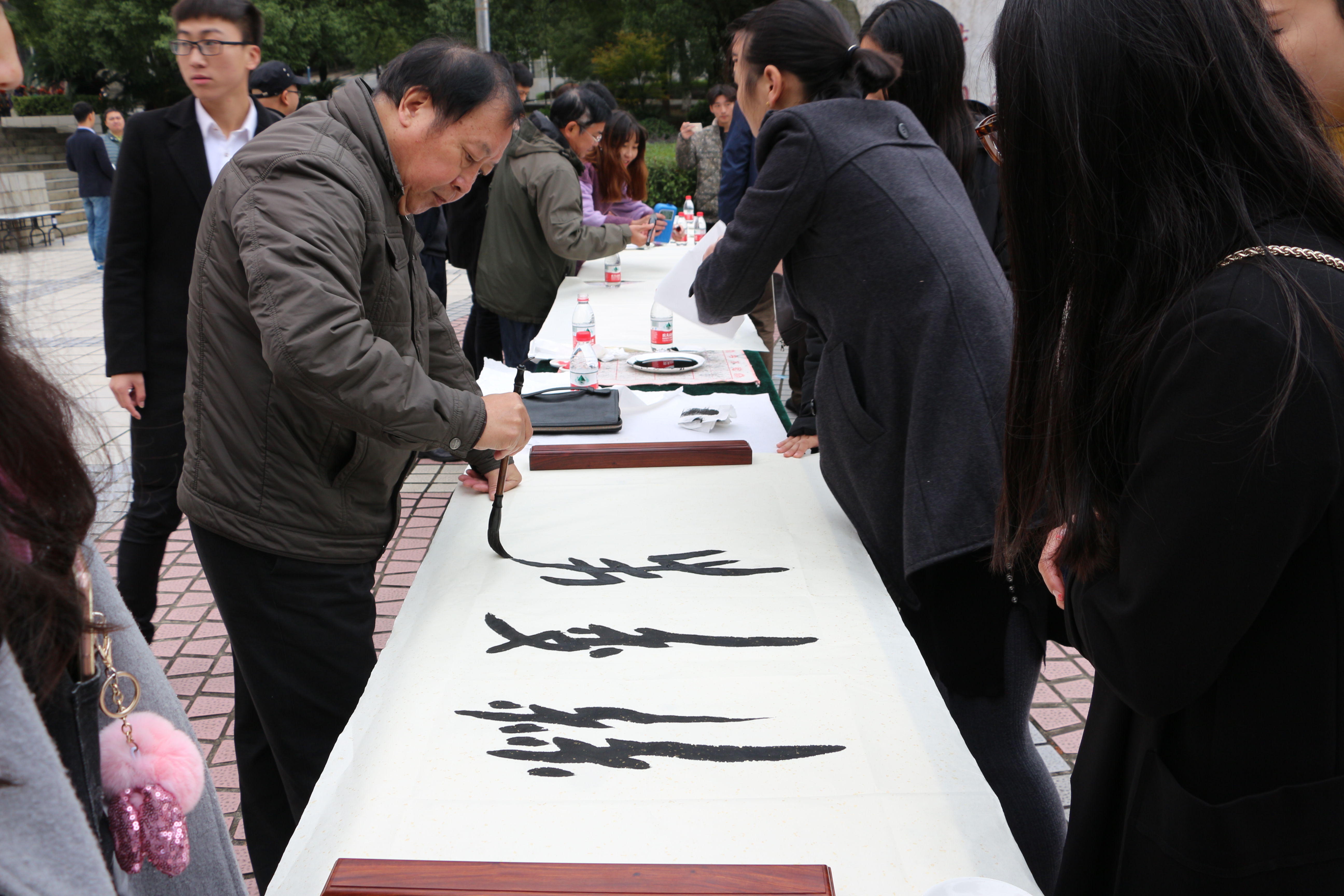据悉,现场书法大赛历来是我校校园文化艺术节的一大特色活动,由共青团华体会官方版网站登录入口委员会主办、美术与艺术设计学院承办,已成功举行十余届。在校团委的指导下,该项活动已成为一场参与面极广、影响力极强、评价度极高的文化盛宴。本届比赛共有千余师生参加,校党委书记陈弘教授、校长曾宝成教授等一行校领导莅临本次活动现场。曾宝成校长寄语广大师生:“我们要以创建文明校园、 传承君子文化为目标,把文明教育和传承君子文化融入到我们的学习、工作和生活之中,融入到自己的一言一行之中,凝心聚力,务实进取,发扬和传承传统民族文化,增强文明意识,规范文明行为,提高文明素养,倡导文明新风,营造文明氛围,携手共建最美科院!”