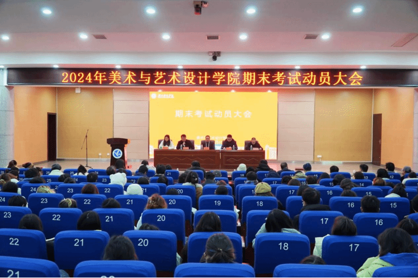 12月27日上午,美术与艺术设计学院期末考试动员大会在潇湘大讲堂召开,院领导班子及全体师生参加,会议由党总支书记王博主持。