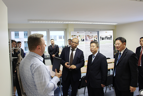 亚琛工业大学地处德国荷兰比利时三国交界处,是德国最负盛名的理工科大学之一,也是世界顶尖的理工科大学之一,其机械工程、经济工程、自然科学等居德国首位。该校非常注重教学科研与生产一线的紧密结合,机械工程学院的教授都有在生产一线工作的经历,其培养的学生也深受企业欢迎。该校施耐特教授向曾宝成一行详细介绍了亚琛工业大学的基本情况和机械工程学院的办学经验与做法。曾宝成参观完亚琛工业大学时,深有感触,他强调,教育必须与生产劳动相结合,亚琛工业大学的经验值得我们学习借鉴,对实现学校转型发展大有裨益。