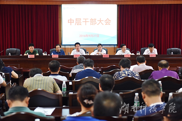 本网讯(记者 张云芳 摄影 何帅文)9月27日下午,我校在行政办公楼八楼一会议室召开中层干部大会,传达学习、贯彻落实有关重要文件精神和纪律要求。校长曾宝成,校党委副书记唐艳明,副校长郑山明、吴小林、程智开,正校级督导袁先友出席,全体中层干部参加会议。