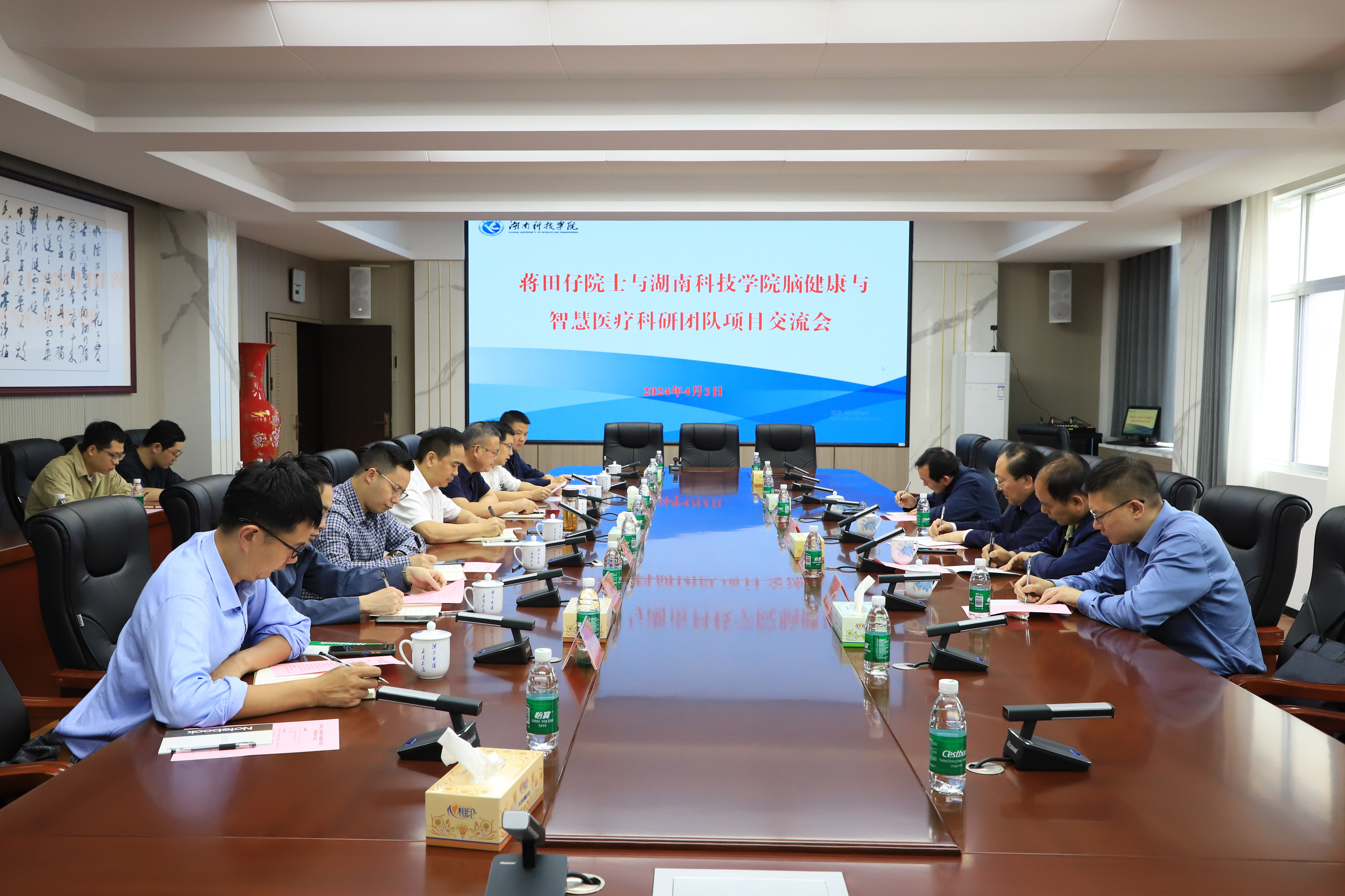 本网讯4月3日,蒋田仔院士与华体会官方版网站登录入口脑健康与智慧医疗科研团队项目交流会在学校举行。欧洲科学院外籍院士、中国科学院自动化研究所脑网络组研究中心主任蒋田仔,永州市中心医院党委书记江拥军,校长黄创霞、副校长何福林出席。信息工程学院、化生学院、理学院负责人以及项目组成员等参加交流会。