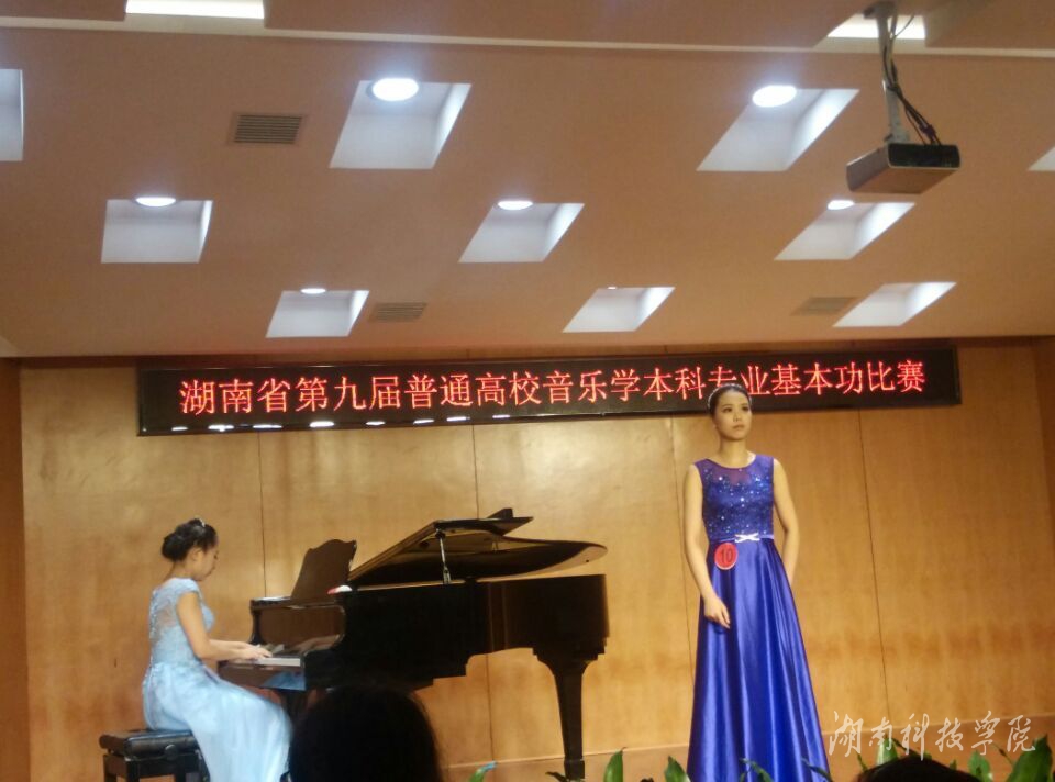 本次比赛由湖南省教育厅、湖南省学校艺术教育委员会主办,共有17所省内本科院校参赛,比赛项目包括音乐基础理论综合测试、声乐演唱、钢琴演奏、自弹自唱、合唱指挥。
