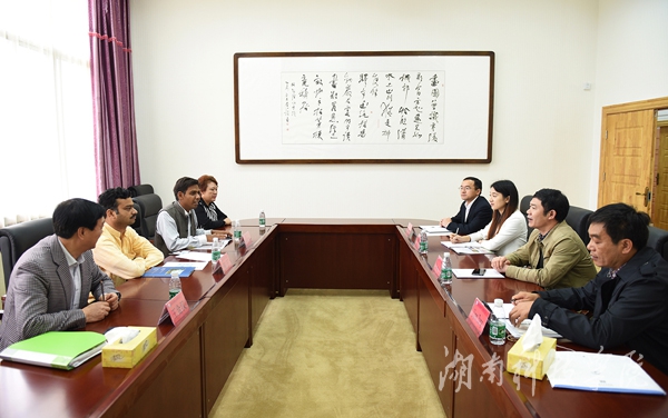 本网讯(通讯员 郑锐)4月14日上午,印度戴薇诗瑜伽学院亚丁博士(YatindraAmoli)、印度瑜伽事业发展部辛仁杰博士(RanvijaySinha)、湖南戴薇诗文化发展有限公司王金汉等一行来我校交流访问。双方就教师互派、学生交换、文化交流、中外办学等领域的合作与交流达成初步意向。