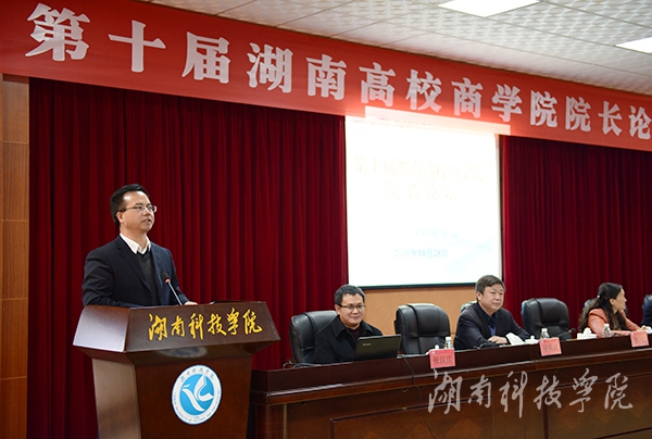 本网讯 11月27日至28日,由湖南省系统工程与管理学会举办的第十届湖南高校商学院院长论坛在我校举行。与会专家围绕商学院的建设与发展进行了深入研讨交流。湖南省系统工程与管理学会名誉理事长、湖南商学院院长陈晓红,湖南省系统工程与管理学会轮值理事长、湖南省社科院副院长罗波阳及我校校党委书记陈弘、副校长宋宏福出席论坛开幕式。论坛吸引了来自省内各高校的商学院院长、系主任和专家学者40余人到会参加。