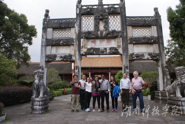 本网讯(通讯员 刘泓 张菊芳)为加深外籍教师对永州文化的了解、丰富活跃外籍教师的日常生活,11月7日,学校组织来自澳大利亚、日本和印度的新进外籍教师一行7人前往宁远县拜访九嶷山舜帝陵、参观文庙、体验民俗活动,感受永州文化。