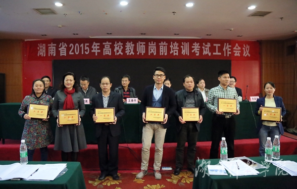 本网讯(人事处)11月2日,湖南省高等学校师资培训中心召开高校教师岗前培训2014年总结表彰暨2015年考试工作会议。我校荣获2014年度湖南省高等学校教师岗前培训管理工作一等奖,蒋露茜老师被评为先进管理工作者,覃佐东等五位老师被评为优秀学员。人事处处长李勇作为获奖单位代表介绍了培训工作经验。
