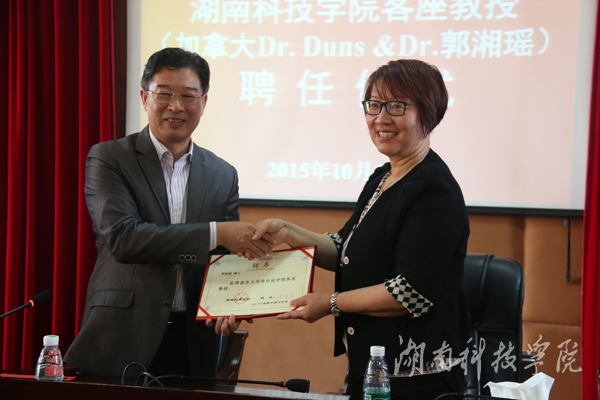 本网讯(记者 许剑桥)日前,加拿大Greg Duns博士及夫人郭湘瑶博士从我校副校长宋宏福手中接过华体会官方版网站登录入口客座教授聘书。宋宏福表示,Greg Duns博士及夫人郭湘瑶博士的加入,将加强我校与国际的科研合作,拓展科学研究的国际视野,对于指导和推动我校省重点实验室的相关课题研究,进一步发挥我校在该领域产学研项目的先进性和特色性带来新的发展机遇。
