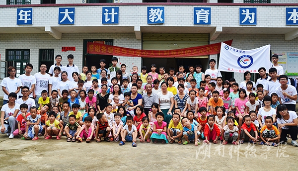 我校“逐梦之旅”大赛“爱心帮扶天天乐小学”团队继毕业季爱心募捐棉被活动后,7月18日,团队成员周易晶、周盈、李佳丽、刘信、戴猛、廖梓嘉与梦想导师周平尚一行颠簸过崎岖的山路,抵达祁阳县羊角塘镇狮城村天天乐小学,与广东医学院的支教志愿者一起进行为期一周的爱心帮扶活动。
