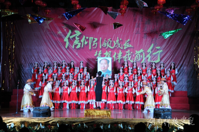 五月的春风情深意浓,五月的花海流溢飘香。比赛在青年教工团总支代表队带来的精彩朗诵《立师德铸师魂》中拉开序幕,老师们用慷慨激昂的语调,诉说教师的责任与担当,骄傲与自豪,诠释了湘科院人的精神和品质,表达了向张京华老师学习的决心和信心。外国语学院代表队的《走进新时代》唱响整场比赛的第一支歌,唱出我们新时代的特色和朝气蓬勃。体育学院代表队带来的《没有共产党就没有新中国》唱出了热血青年的斗志昂扬。马克思主义学院代表队高举毛主席头像,以一首《翻身农奴把歌唱》向祖国致敬。传媒学院代表队嘹亮动人的和声让人印象深刻,《文明在哪里》道出了青年学子的反思;《共筑中国梦》则唱出了大到国家小到个人的青春之梦。电子与信息工程学院代表队的《辅导员之歌》,唱出了学子对老师们最真挚的热爱。经济与管理学院代表队的《人民警察之歌》以整齐的合唱和动作展示出了英姿飒爽的青年风采。音乐与舞蹈学院代表队以表演的形式压轴出场,专业的表演获得了全场热烈的掌声。