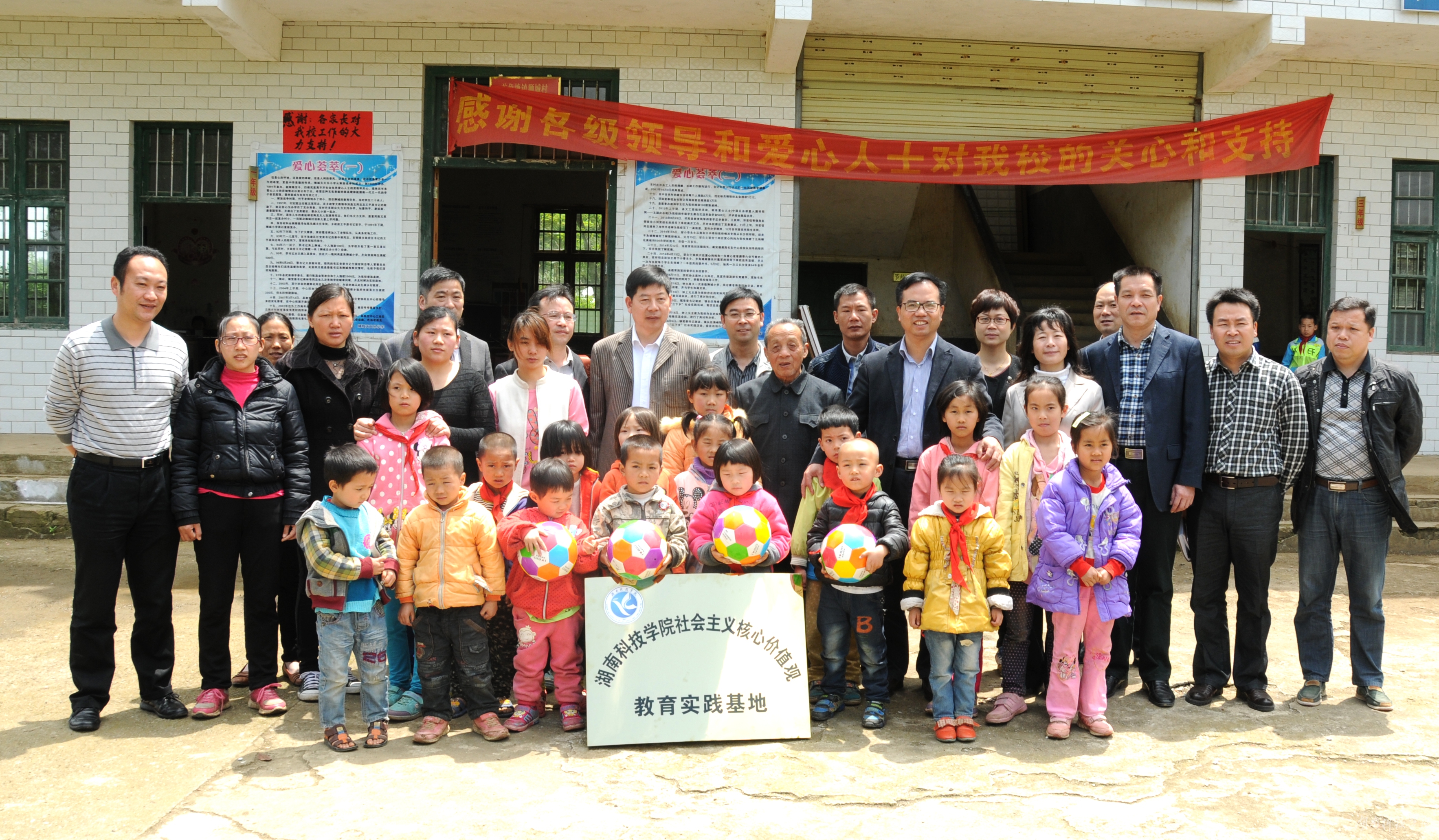 陈弘深情地说,“唐延禄老人祖孙三人扎根基层、坚守教育的理念着实让人感动和敬佩,全校师生要以天天乐小学的老师们为榜样,脚踏实地践行社会主义核心价值观,努力在岗位上建功立业。”他表示我校将长期、定点为天天乐小学提供支持。随后,陈弘与该校校长陈文英共同为“华体会官方版网站登录入口社会主义核心价值观教育实践基地”揭牌。他还高兴地与孩子们、老师们合影留念。