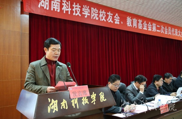 我校总会计师、第一届教育基金会秘书长吴小林介绍了代表产生办法以及第二届校友会、教育基金会理事会候选人情况。