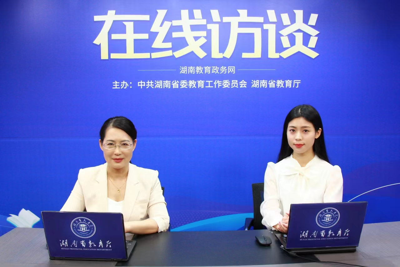 本网讯(通讯员 张亚南) 6月14日,副校长郑银芳受邀参加湖南教育政务网在线访谈,就“促进高校毕业生高质量充分就业”这一主题与网友在线交流。