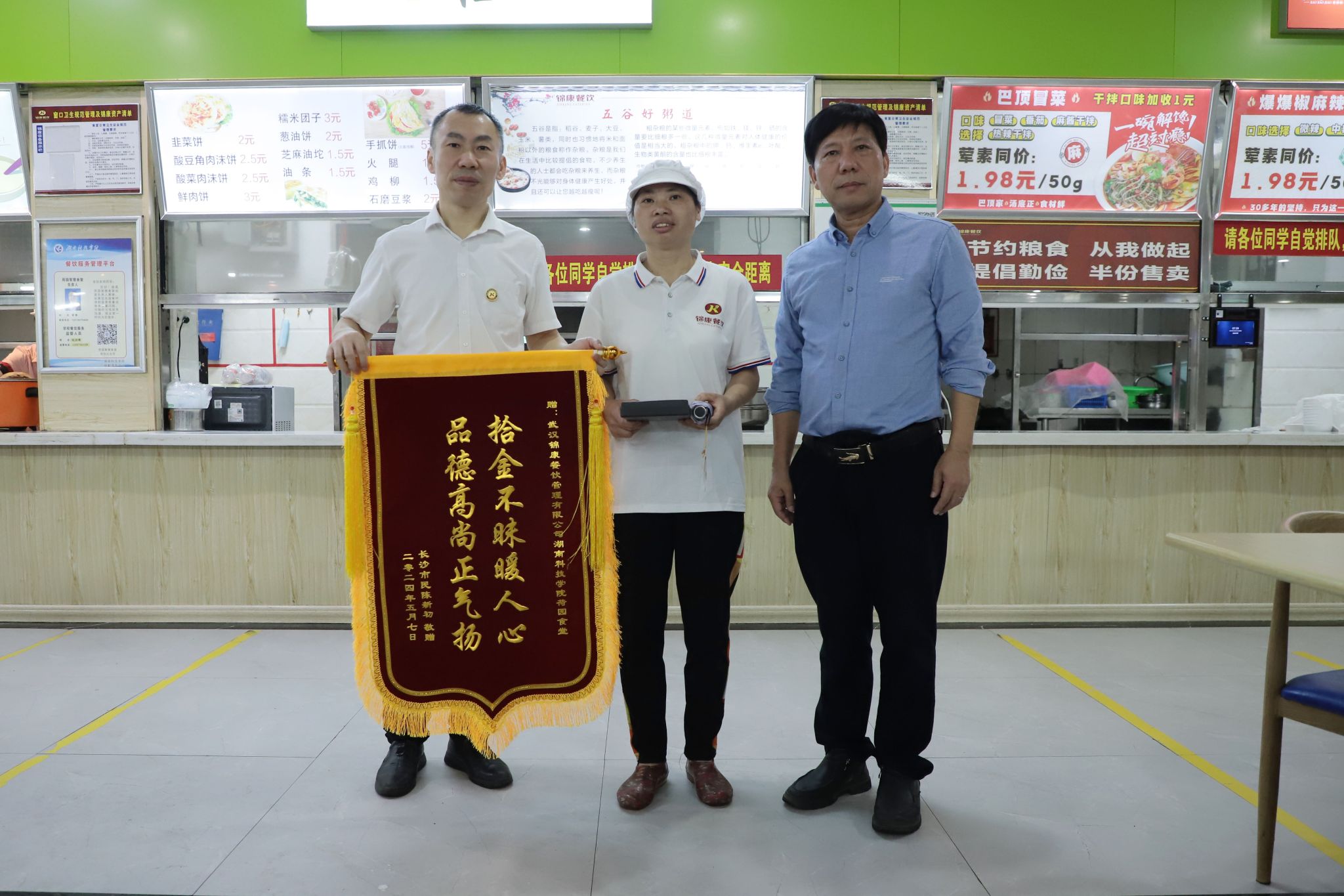 本网讯“特别感谢华体会官方版网站登录入口,让我非常感动,也真切的感受到永州人民、科院师生的热情好客,善良淳朴,永州景美人美心灵更美。”近日,我校荷园食堂收到了一面绣有“拾金不昧暖人心,品德高尚正气扬”的锦旗及一封感谢信,感谢食堂员工蒋冬梅的拾金不昧,为学校的管理育人水平点赞。