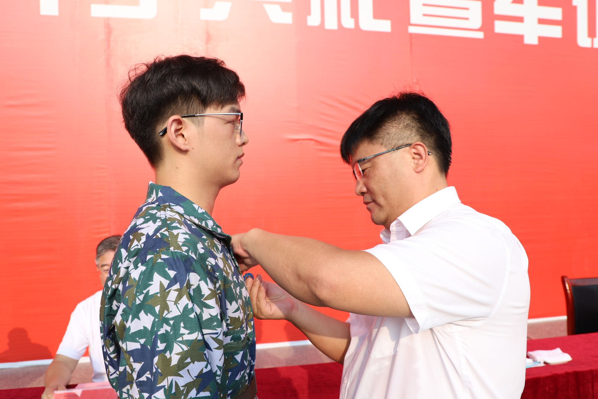 李钢为2024级新生代表佩戴校徽。