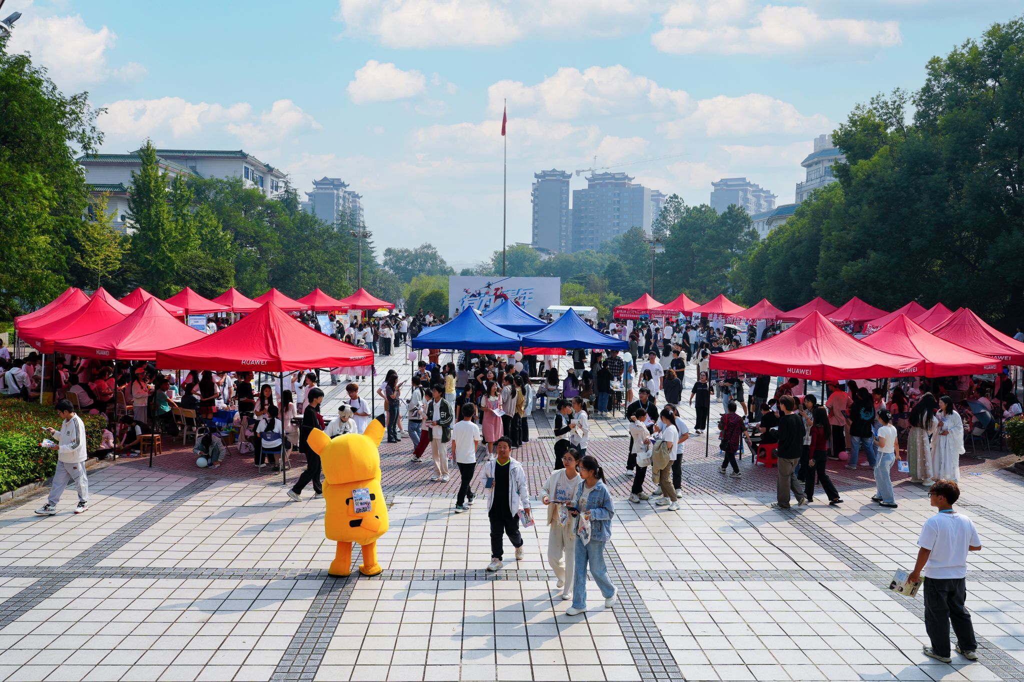 本网讯(记者 逄宇鸣 袁馨)汉服秀、书法展示、古琴表演……10月13日,学校2024年“有为青年,敢于热爱”学生社团招新活动在舜德广场举行,4000余名新生共赴青春之约。