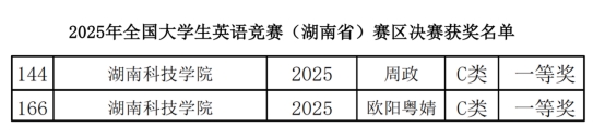 我校学生荣获2025年全国大学生英语竞赛湖南赛区一等奖(图)