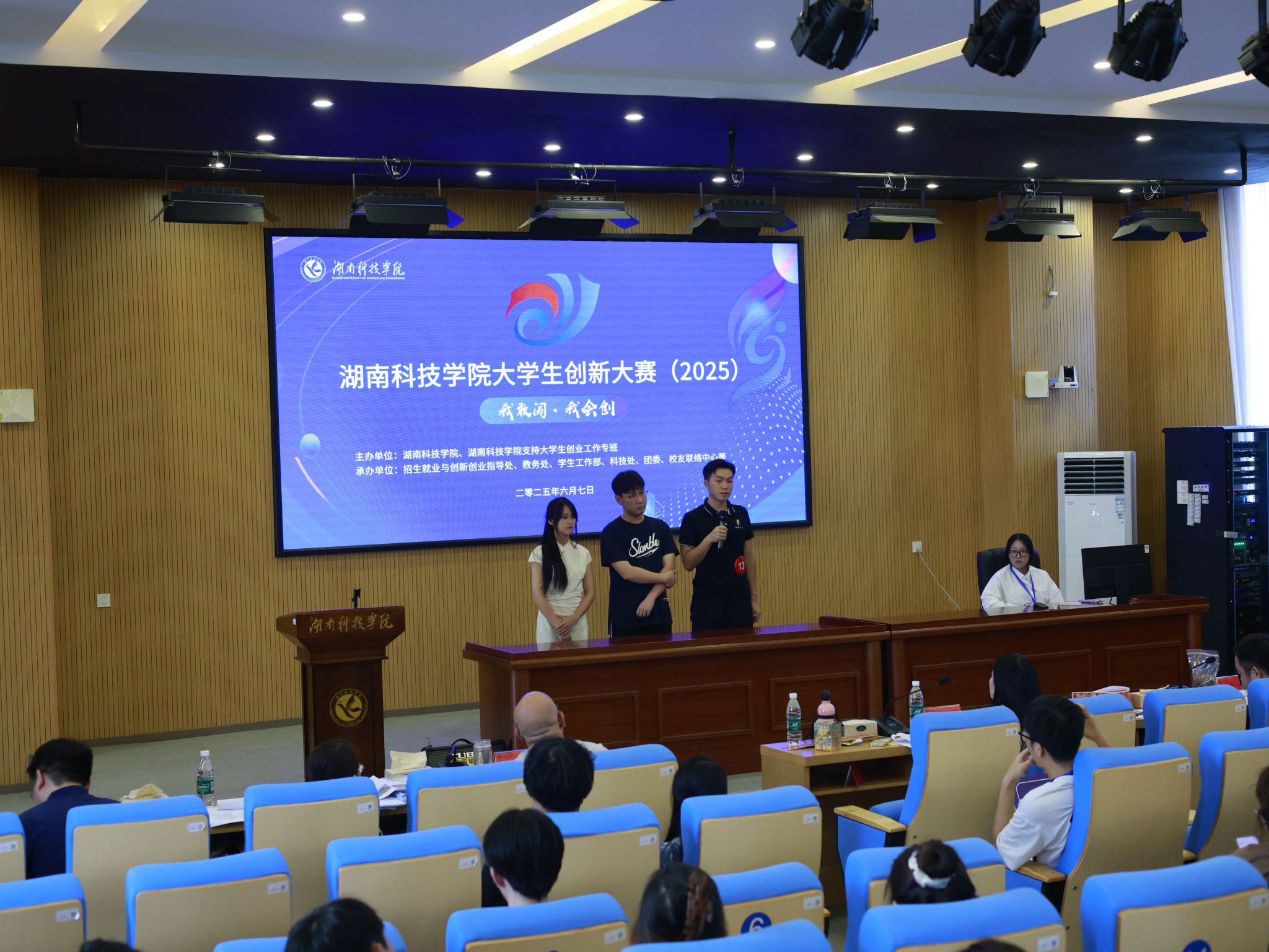 本网讯(通讯员 龙泉)6月7日,学校举行2025年大学生创新大赛总决赛,大赛邀请3名校外专家、2名校内专家担任评委。副校长郑银芳,各教学学院党总支书记、创新创业专干以及各项目指导老师到场观摩。