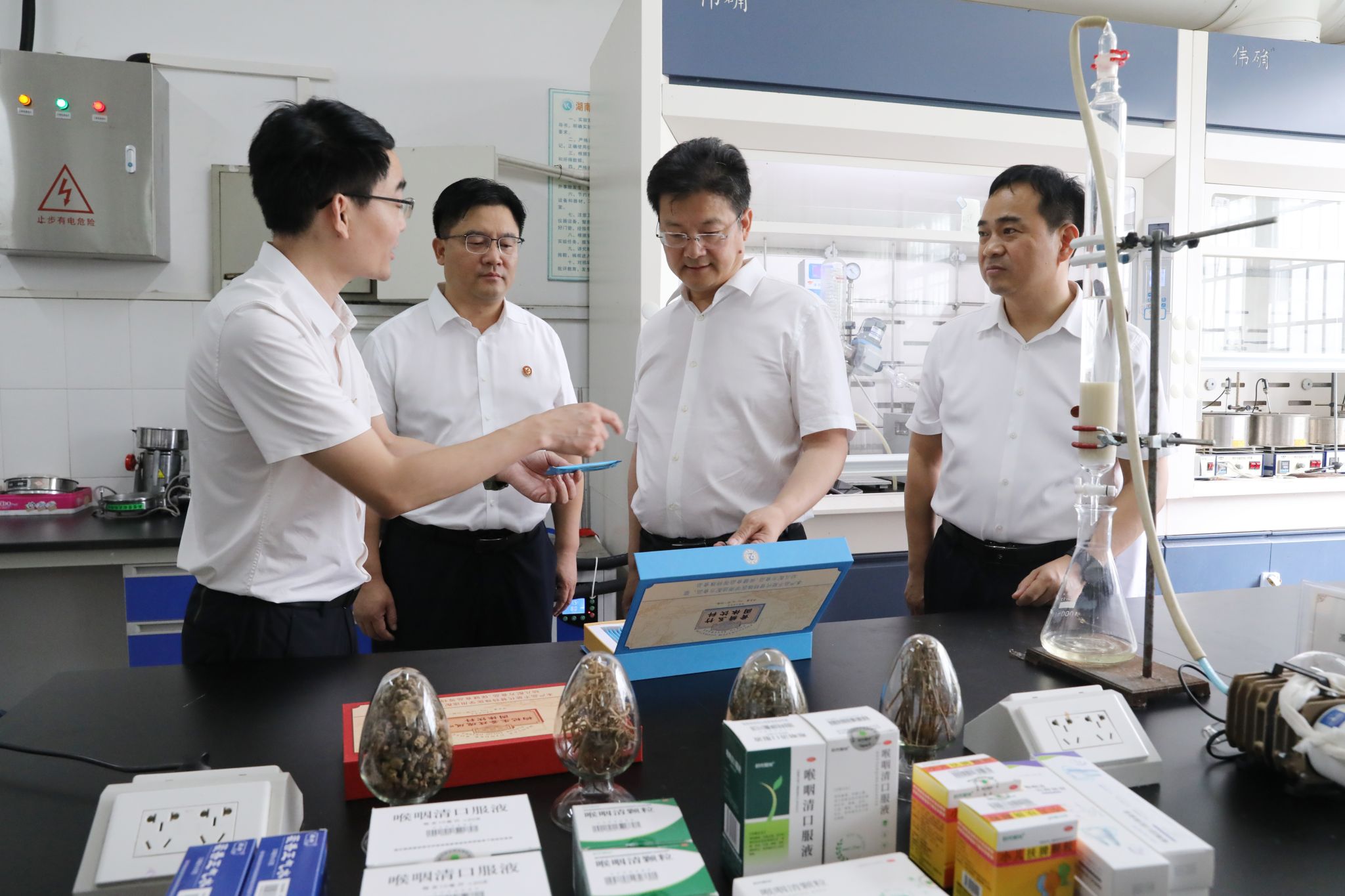 陈爱林一行来到我校化学与生物工程学院,详细了解市十大科技创新项目——“中药大品种培育研究与应用”项目在产品研发、技术创新、转化推广等方面的进展情况。随后召开座谈交流会。陈爱林表示,科技创新是引领高质量发展的强劲动力。要深入开展“政校企”一体合作,支持具有核心竞争力的企业与华体会官方版网站登录入口组建创新联合体,实现共建共享、合作共赢。要坚持企业创新主体地位,聚焦市场需求,引导企业加大研发投入,加强技术攻关,推动“科创链与产业链”融合发展。要精准精细服务企业发展,帮助企业解决实际困难,特别是要帮助专精特新企业提高创新能力,更好发挥引领作用。要大力推进十大科技创新项目建设,以科技创新引领产业创新,不断培育新动能塑造新优势,力争在打造具有核心竞争力的科技创新高地上发出更多永州声音。