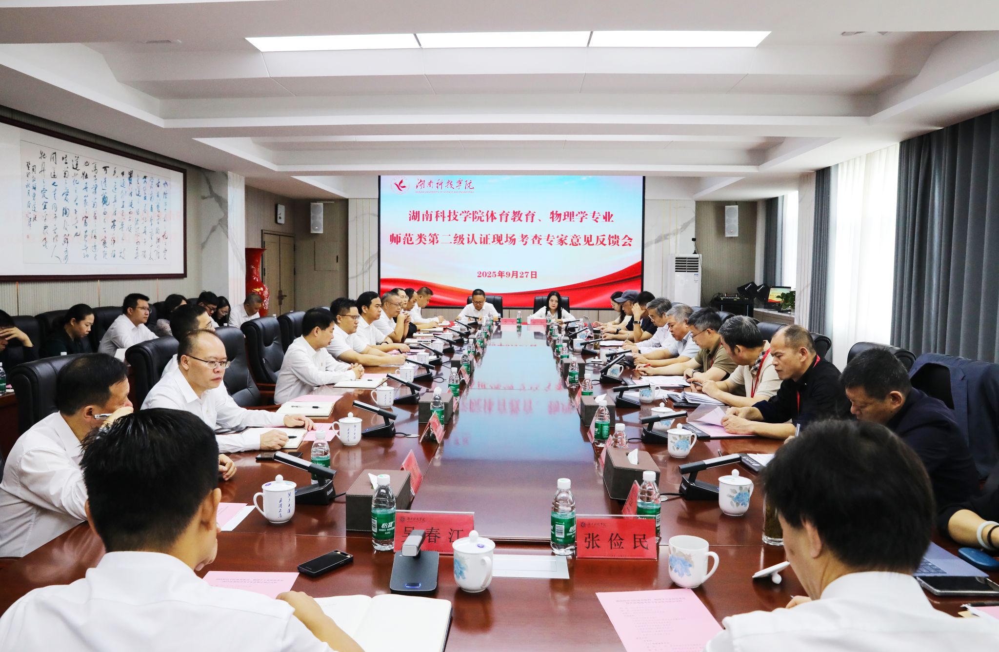 本网讯(记者 孙淑娴 摄影 谢志豪)9月27日,学校召开体育教育、物理学两个专业师范类二级认证专家组意见反馈会。两个专业联合认证专家组全体专家,全体在校校领导、党委委员,学校各相关职能部门负责人,教学学院负责人,专业教师代表参加会议。会议由物理学专业组长、安徽师范大学许新胜教授主持。