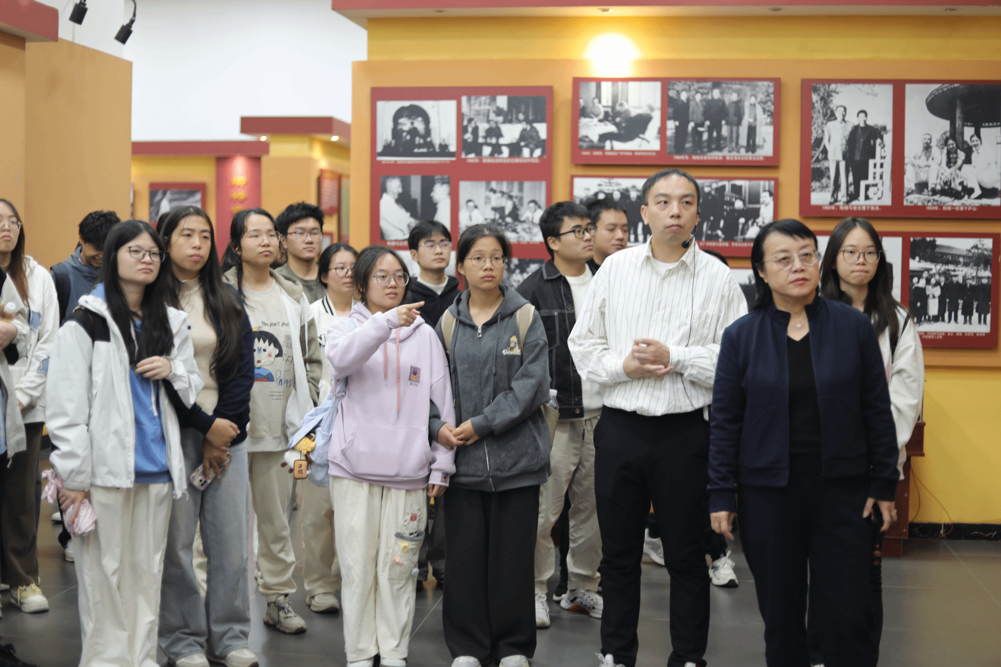 在陶铸纪念馆,马克思主义学院以“四个一”特色教学模块开展沉浸式学习,即通过聆听一场专题讲解、观摩一次实物展品与展板、上一堂现场微课、开展一个主题讨论,让全体师生系统了解陶铸同志为中国革命和建设事业艰苦奋斗、无私奉献的一生,感受其“松树风格”的革命品格;在师生围绕“新时代如何传承红色基因”的热烈讨论中,廖雅琴强调:“陶铸同志用一生诠释了共产党人的忠诚与担当,希望同学们以革命先辈为镜,筑牢信仰之基,在实践中锤炼过硬本领。”