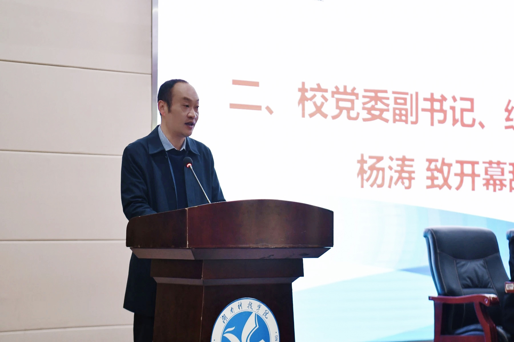 杨涛在致辞中代表学校党委、行政向大会的顺利召开表示热烈的祝贺,向辛勤履职的学生代表和同学们致以诚挚的问候和美好的祝愿。他对各位代表以及新一届学生会提出了四点希望:一是要坚定理想,做信念如磐的青年学子典范;二是要心系学校,做实干担当的青年学子标杆;三是要用心服务,做甘于奉献的青年学子榜样;四是要锐意改革,做昂扬进取的青年学子先锋。