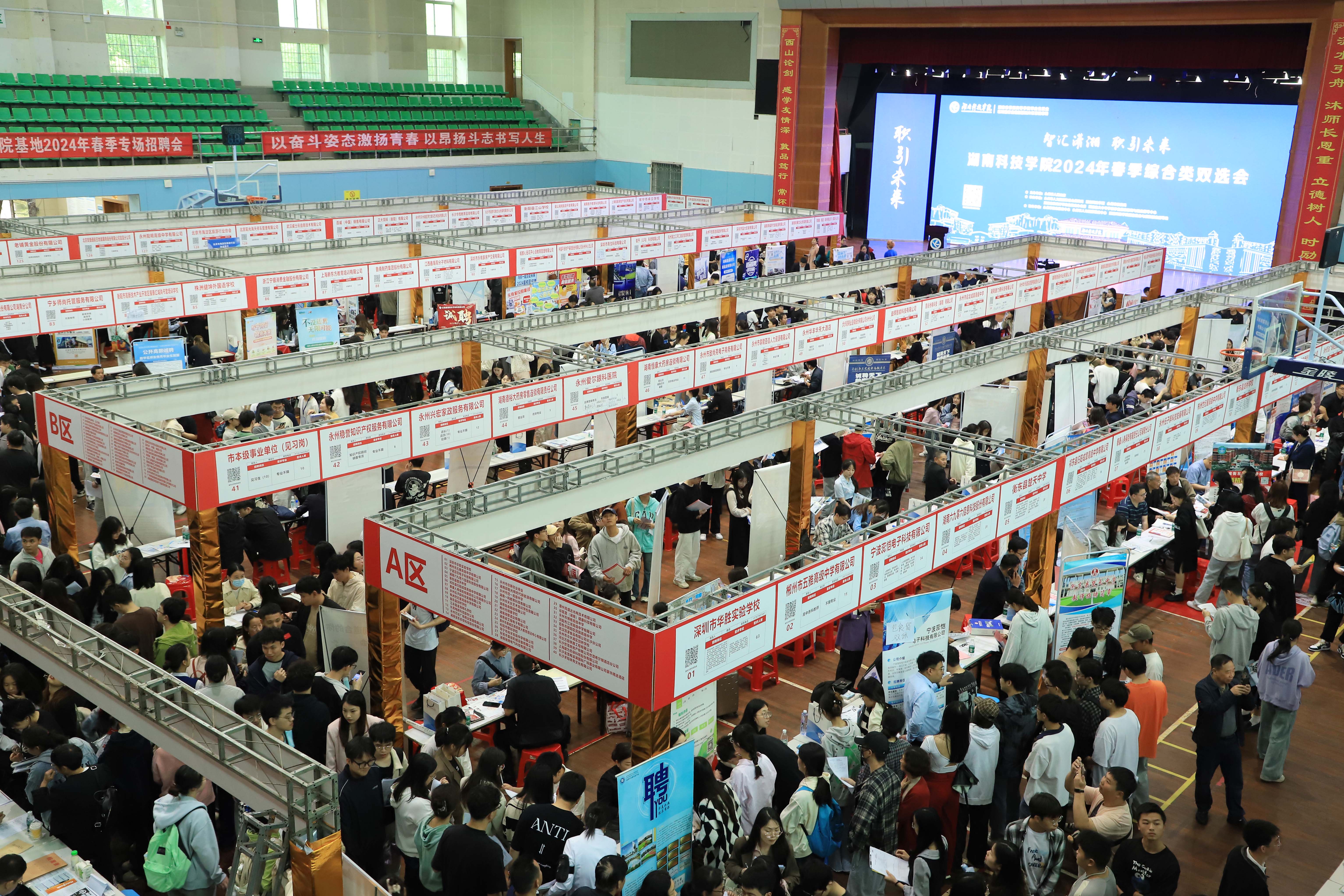 本网讯(记者 胡嘉旋 潘加)4月18日,2024年春季综合类双选会在体育馆举行。校党委副书记、校长黄创霞,副校长郑银芳,永州市人力资源和社会保障局党组书记、局长、一级调研员骆方方,永州市教育局党组副书记、副局长张荣华,永州市人力资源和社会保障局副局长陈巍,永州市就业服务中心主任李军民出席双选会。