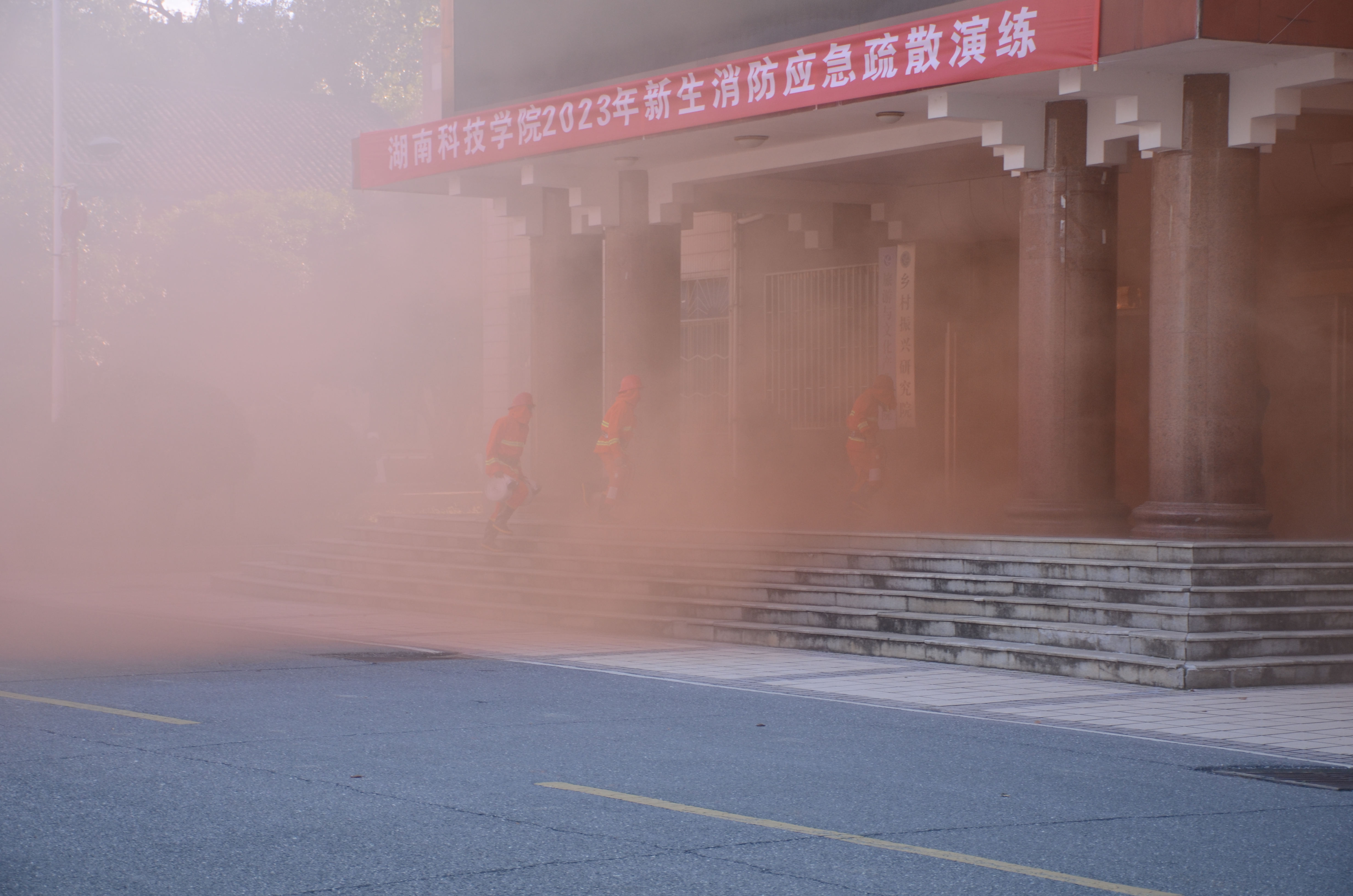 学工部、团委、保卫部相关负责人,各学院党总支副书记、各学院辅导员、1500名新生代表参与此次演练。