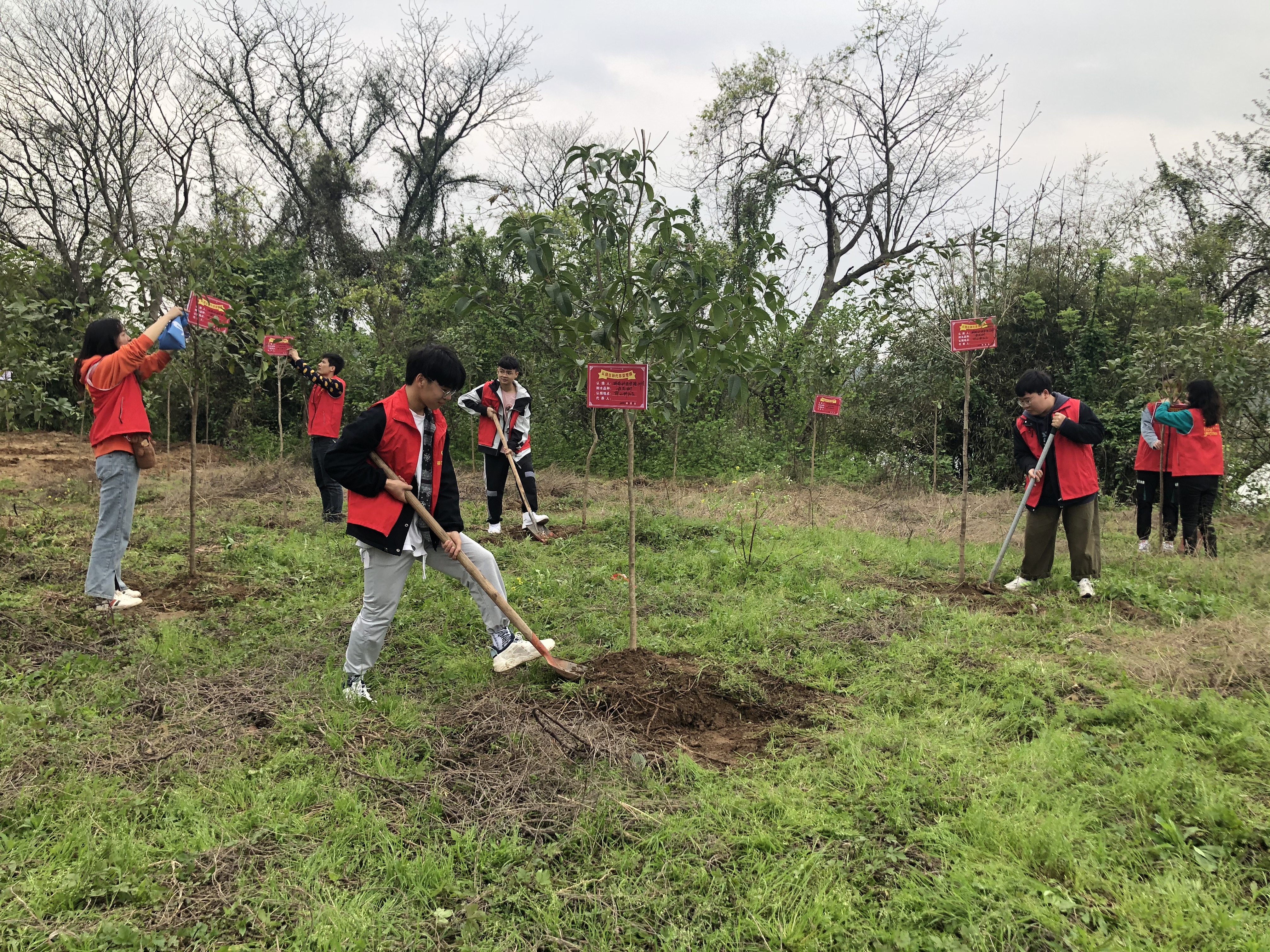 植树现场,师生志愿者们相互协作、配合默契,合力栽下一棵棵树苗。经过三个多小时的辛勤劳动,近200株新种植的树苗错落有致、昂然挺立,为初春的茆江桥增添了不少生机。