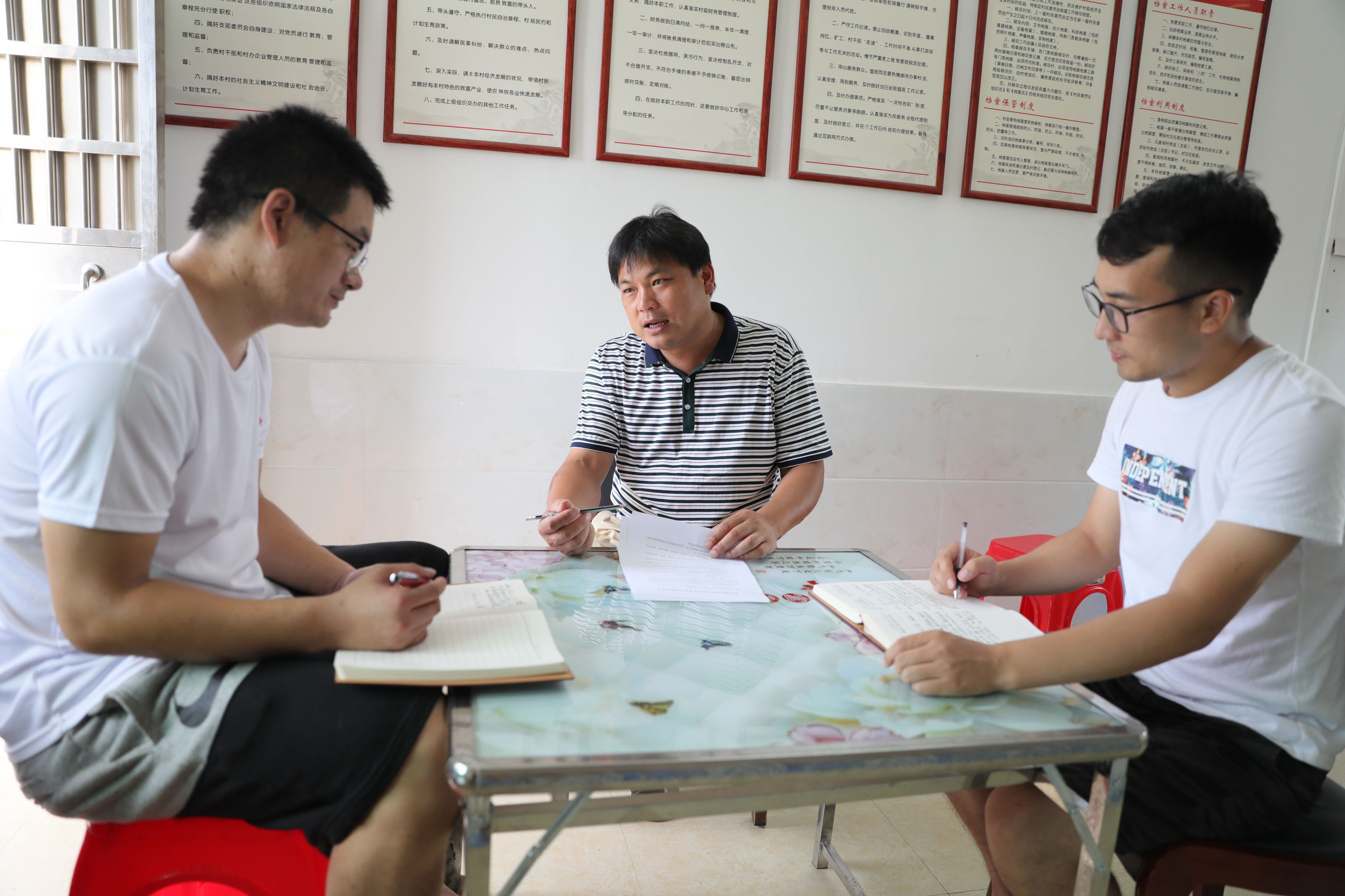 教育扶贫、就业扶贫、产业奖扶、健康扶贫等政策……晚上只要一有空闲时间,肖付明便会拿出政策文件资料翻看,掌握各种工作流程,并在笔记本上做好记录。他就这样边学边用、边用边学,努力做脱贫攻坚惠民政策的“宣讲员”,根据建档立卡户普查表内容设计出了政策落实一览表,确保各项扶贫政策能够惠及每一位贫困户。村民谢贤武就是依靠精准扶贫政策增收脱贫中的一员,肖付明热心地帮助他申报公益性岗位(光伏发电站管护员)解决就业难题,并帮助他谋划个人产业发展找到了脱贫之路。2019年,谢贤武一家通过危房改造住进了新房,解决了住房保障问题。在肖付明看来,“若有贫困户因宣传不到位而未能享受扶贫政策,那就是扶贫干部的失职。”
