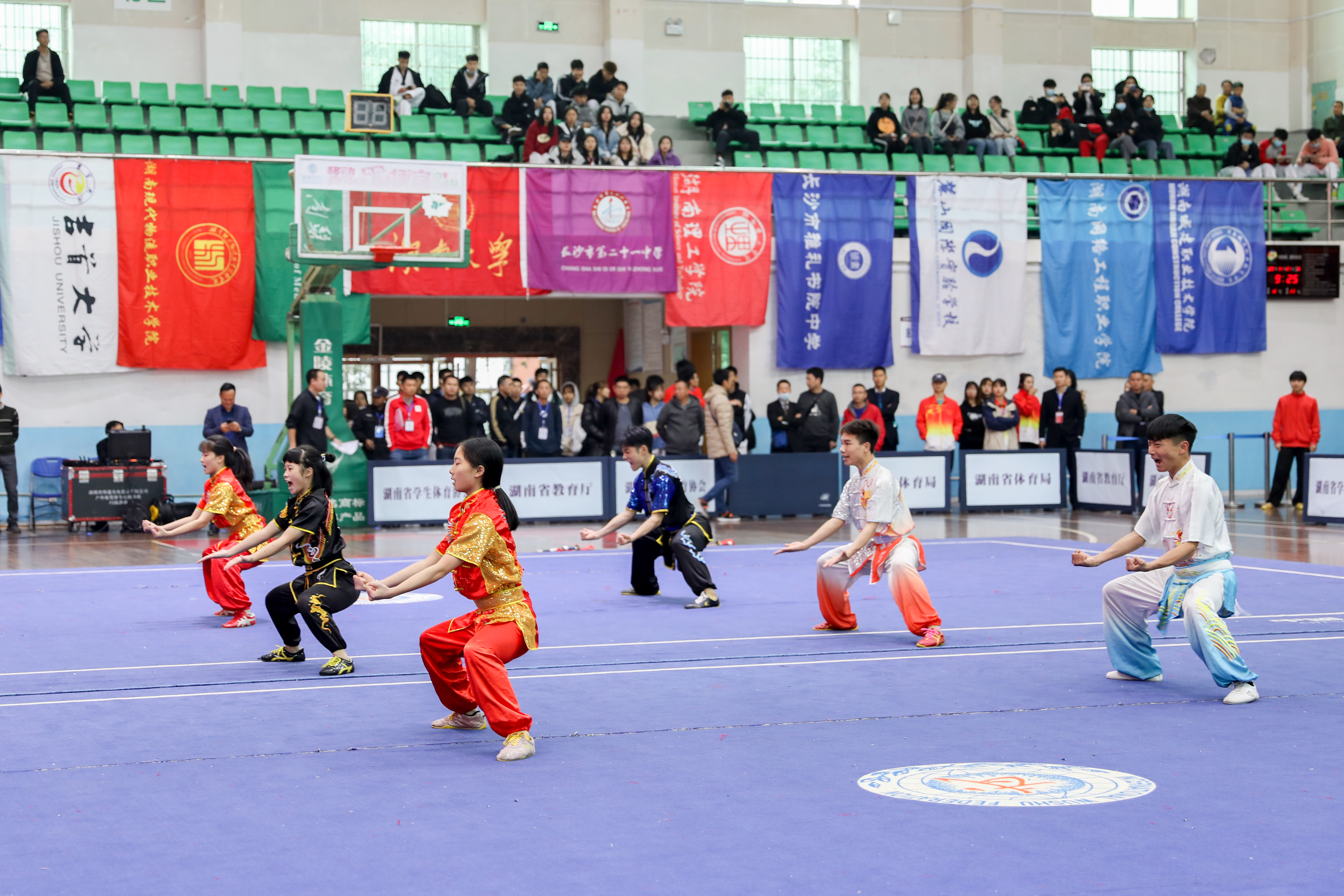 本网讯(记者 陈斯静 实习记者 陈丽杰)11月21日上午,2020年湖南省大中学生武术、跆拳道比赛在我校开幕,来自全省70所大中学校的94支代表队894名运动员参加。