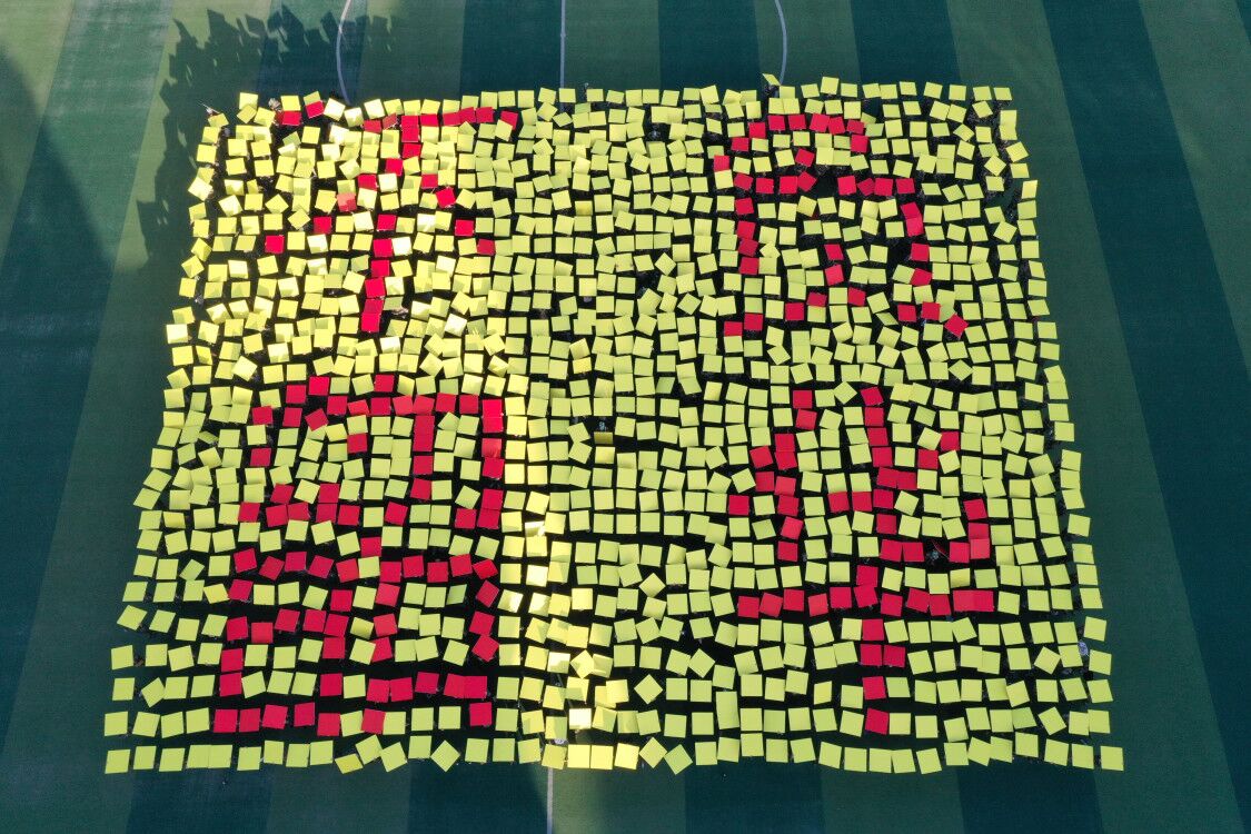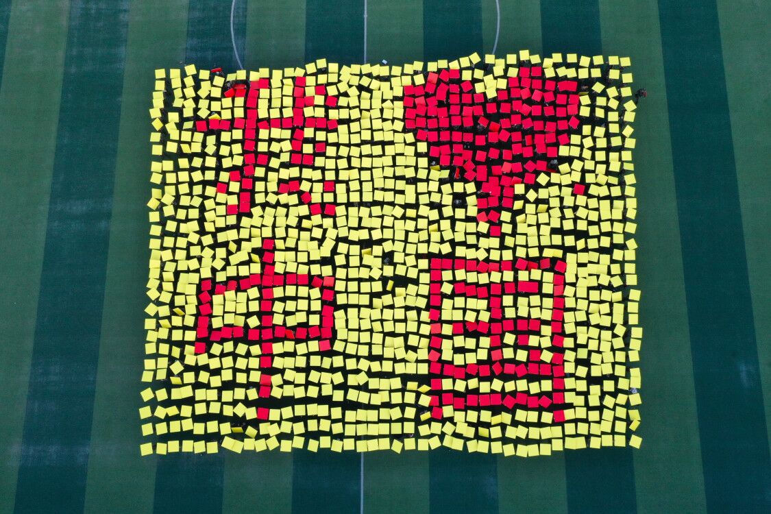 本网讯 10月22日,学校举行了一场大型的“以青春之名告白祖国”活动,由1200名军训新生组成的巨型摆字方阵,通过队形变换摆出“不负青春”“不负韶华”“不负时代” “我爱中国”等字眼,表达了青年学子以青春之我、奋斗之我的贡献新时代的责任担当和爱国情怀。