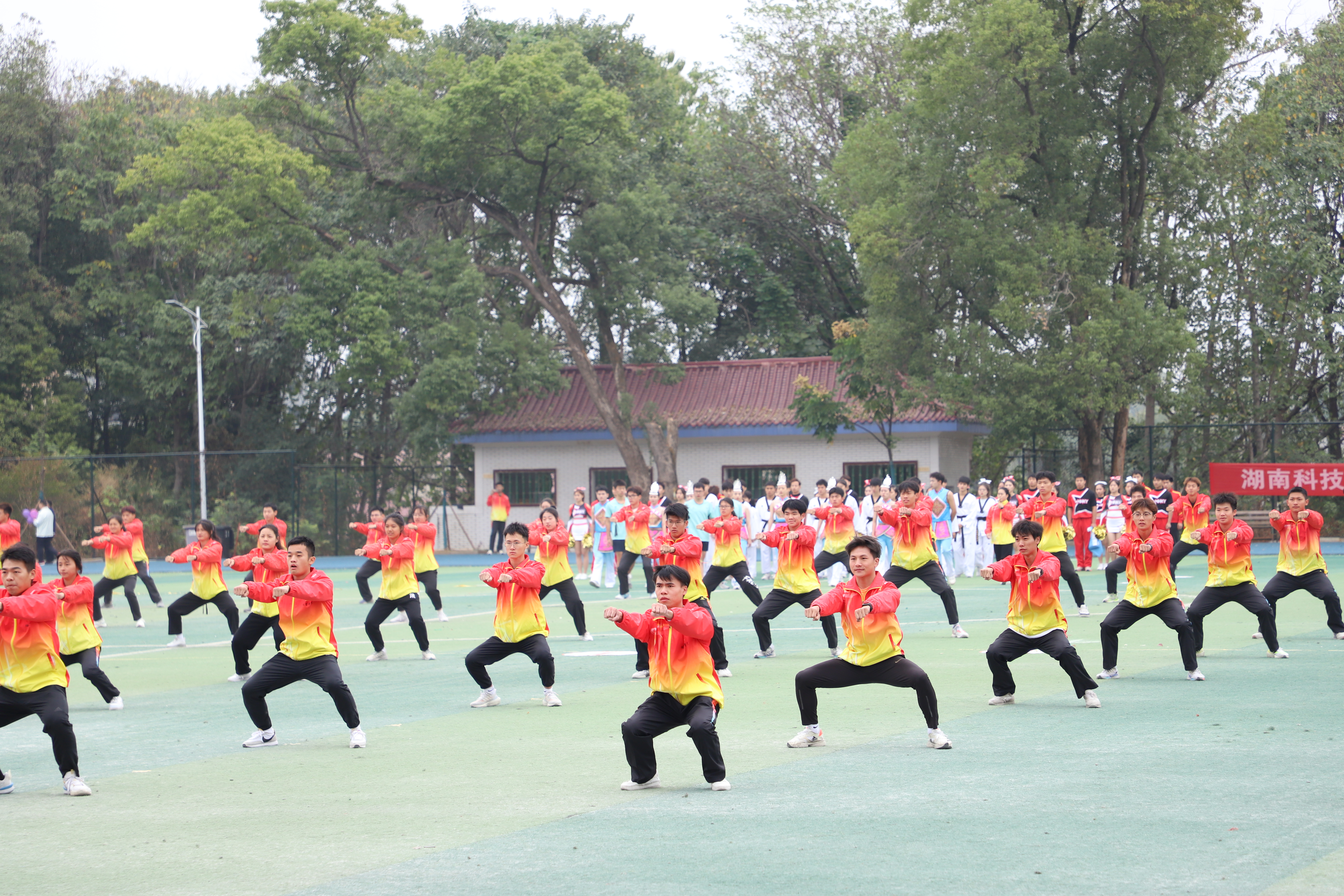 伴随着欢快的乐曲,传媒学院的同学们带来了舞蹈表演《一起向未来》。校武术队、跆拳道队、健美操队的同学们为大家带来精彩的体育表演也将开幕式推向高潮。他们的脸上洋溢着青春和热情,充分展示了湘科院学子积极向上的精神面貌。