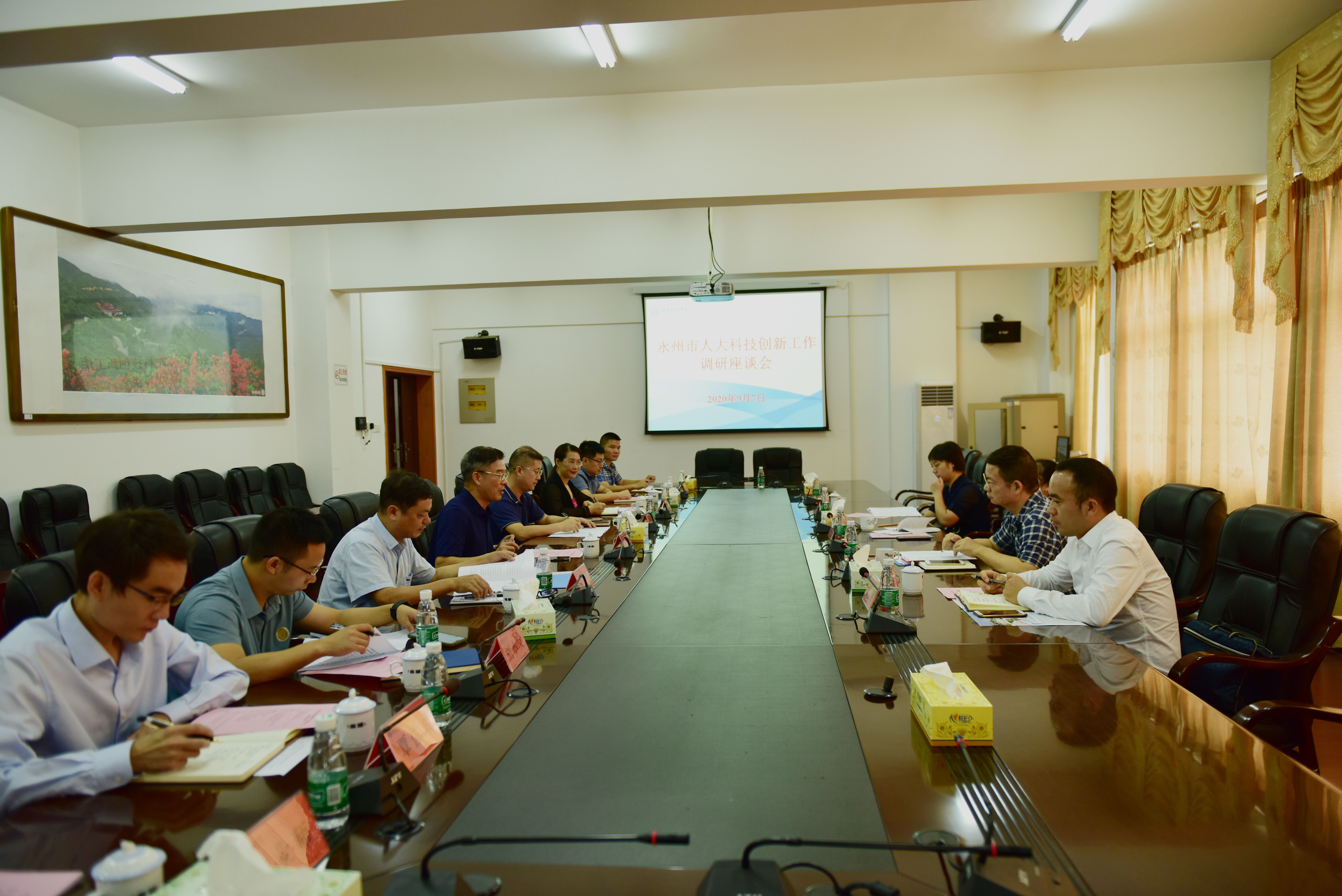 本网讯(通讯员 胡赟)9月7日,永州市人大科教委主任委员、机关党组成员钟敦北一行来校对科技创新工作开展调研,市科技局副局长李晓宁陪同调研。副校长宋宏福主持调研座谈会。