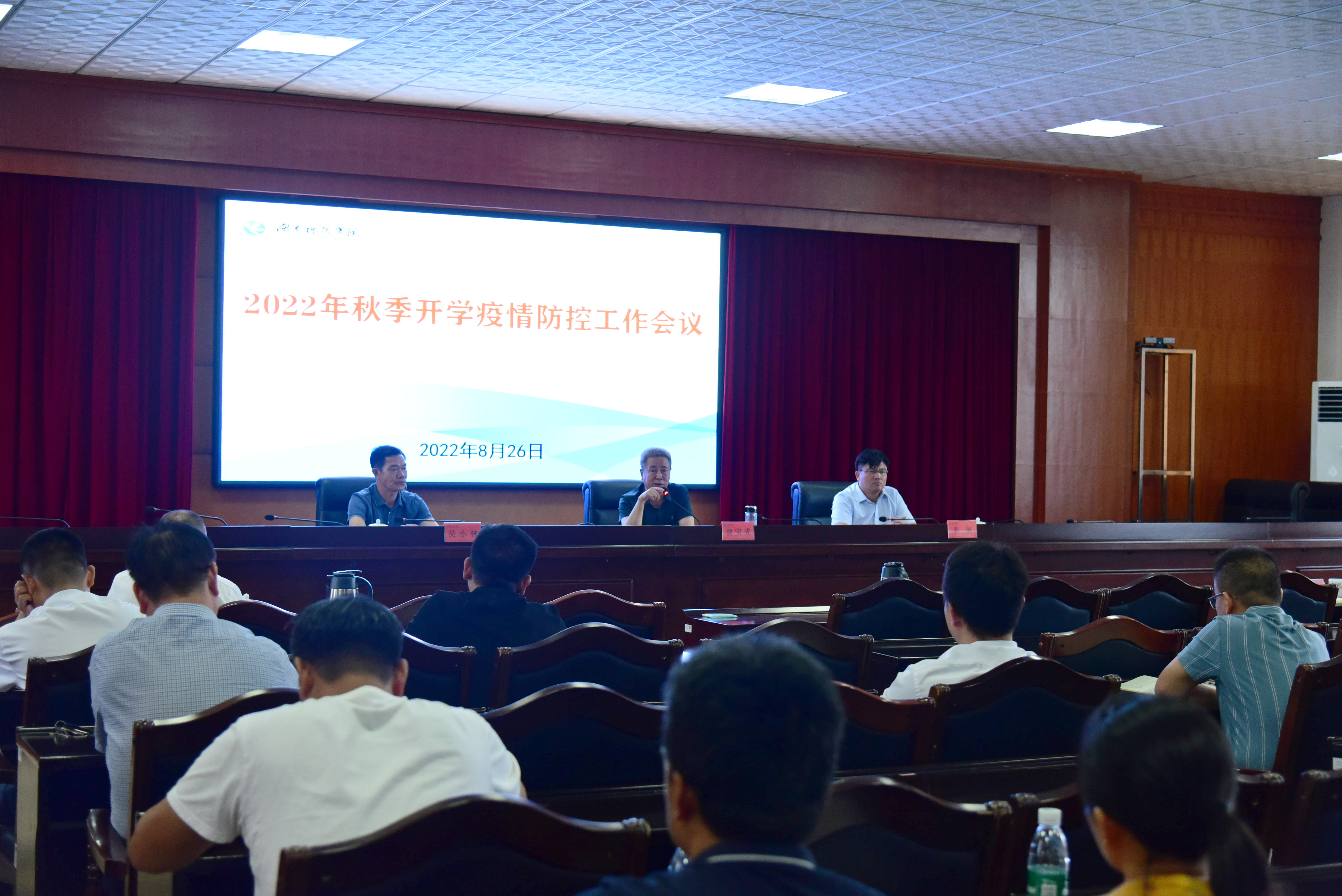 曾宝成强调,要抓好落实上级部门关于疫情防控工作部署,坚决克服麻痹思想、侥幸心理、松劲心态,确保开学防控工作周密扎实、有序推进;要严格落实疫情防控措施,严把校门关,严控师生外出,严控大型聚集性活动,加强健康监测,健全应急处置预案,积极配合地方疫情防控管理,统筹做好我校疫情防控工作;要抓细抓实抓好学校疫情防控各项措施,落实落细落准校园疫情防控,物资储备要到位、清洁消杀要到位、核酸检测要到位、疫苗接种要到位、督导检查要到位。