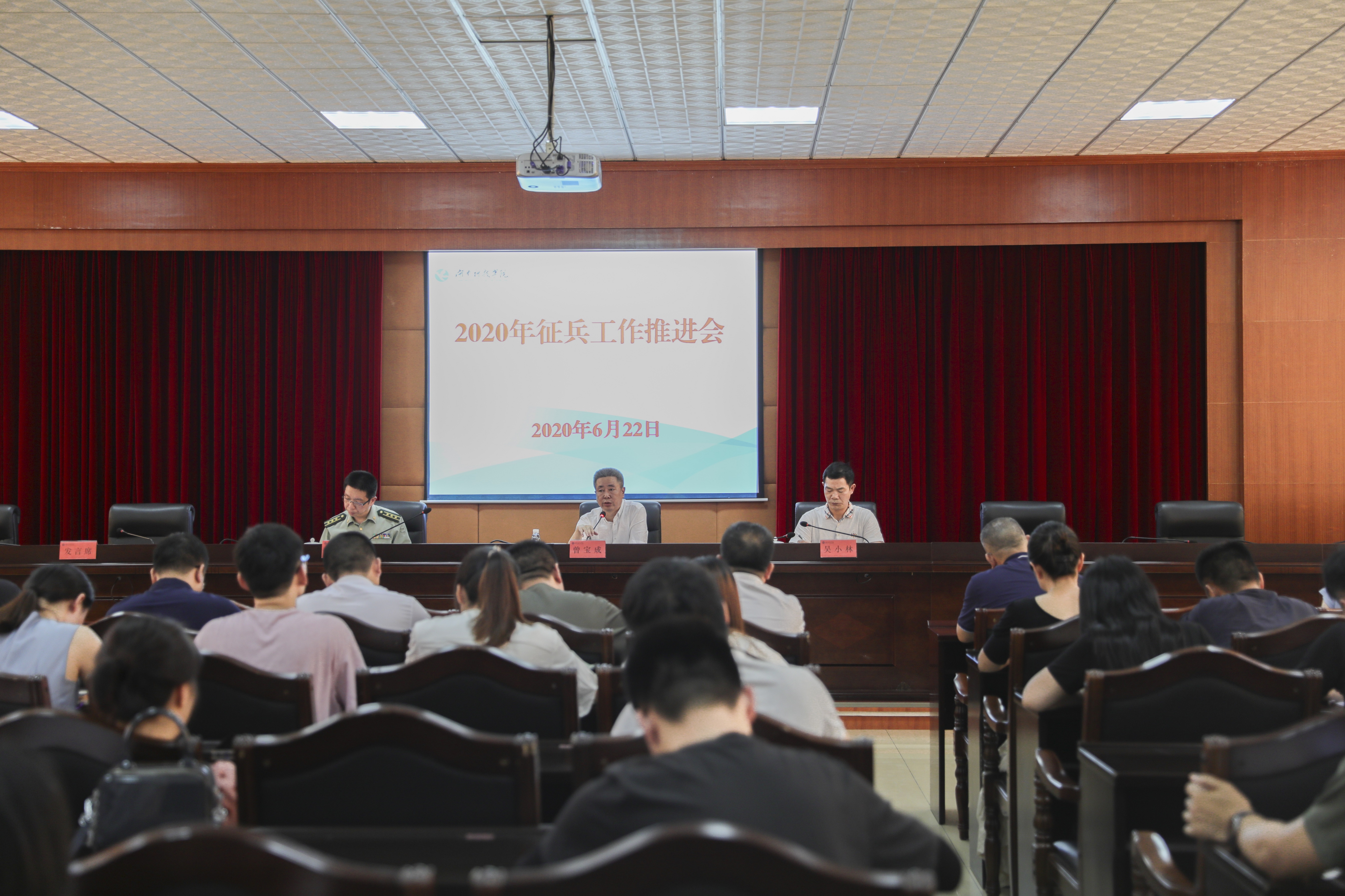 本网讯 为深入贯彻落实湖南省高校征兵工作调度电视电话会议精神,6月22日下午,学校召开2020年征兵工作推进会。学校党委书记、征兵工作领导小组组长曾宝成,零陵区委常委、人武部部长王建武出席会议,会议由副校长、征兵工作领导小组副组长吴小林主持。