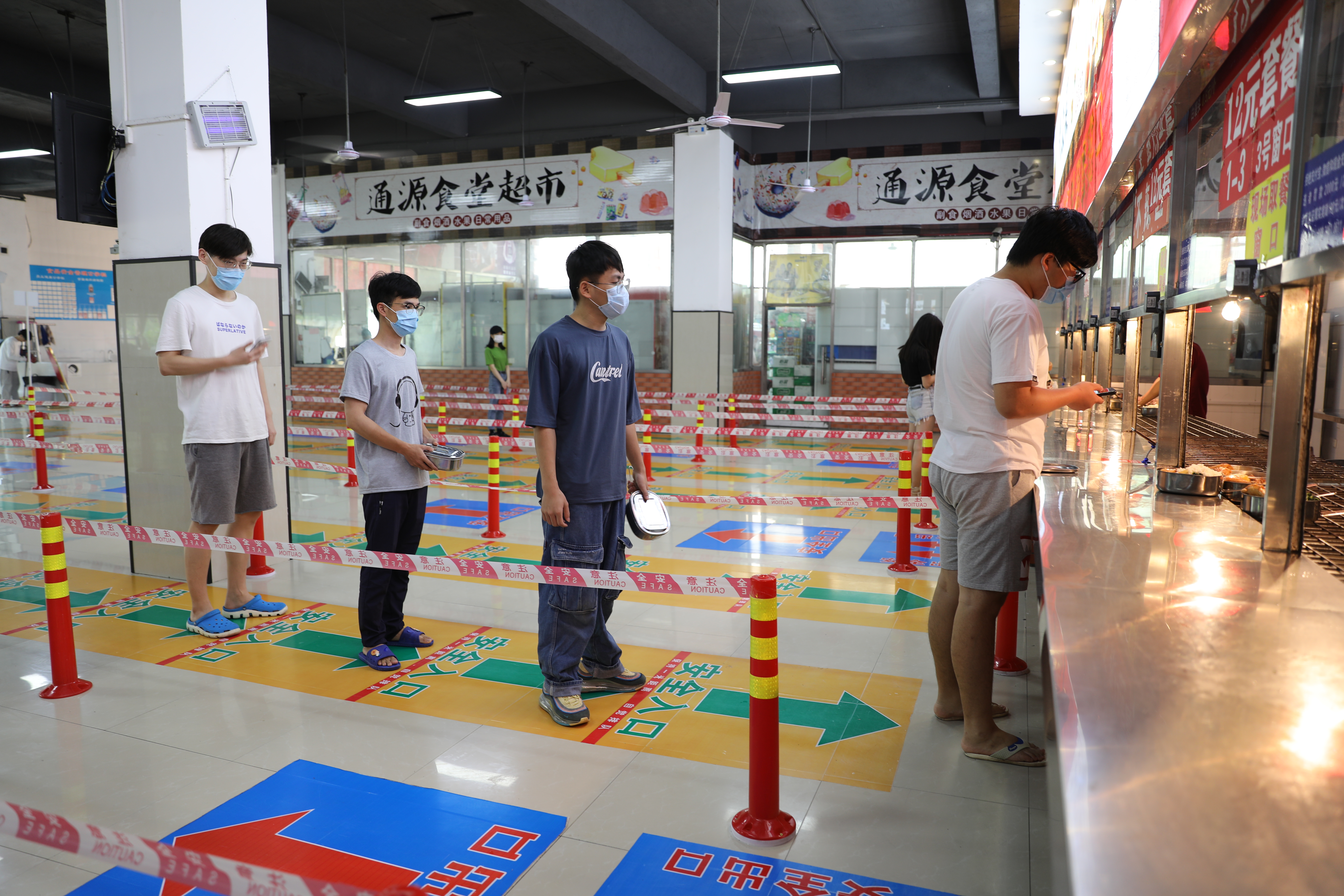 同学们有序地排队取餐