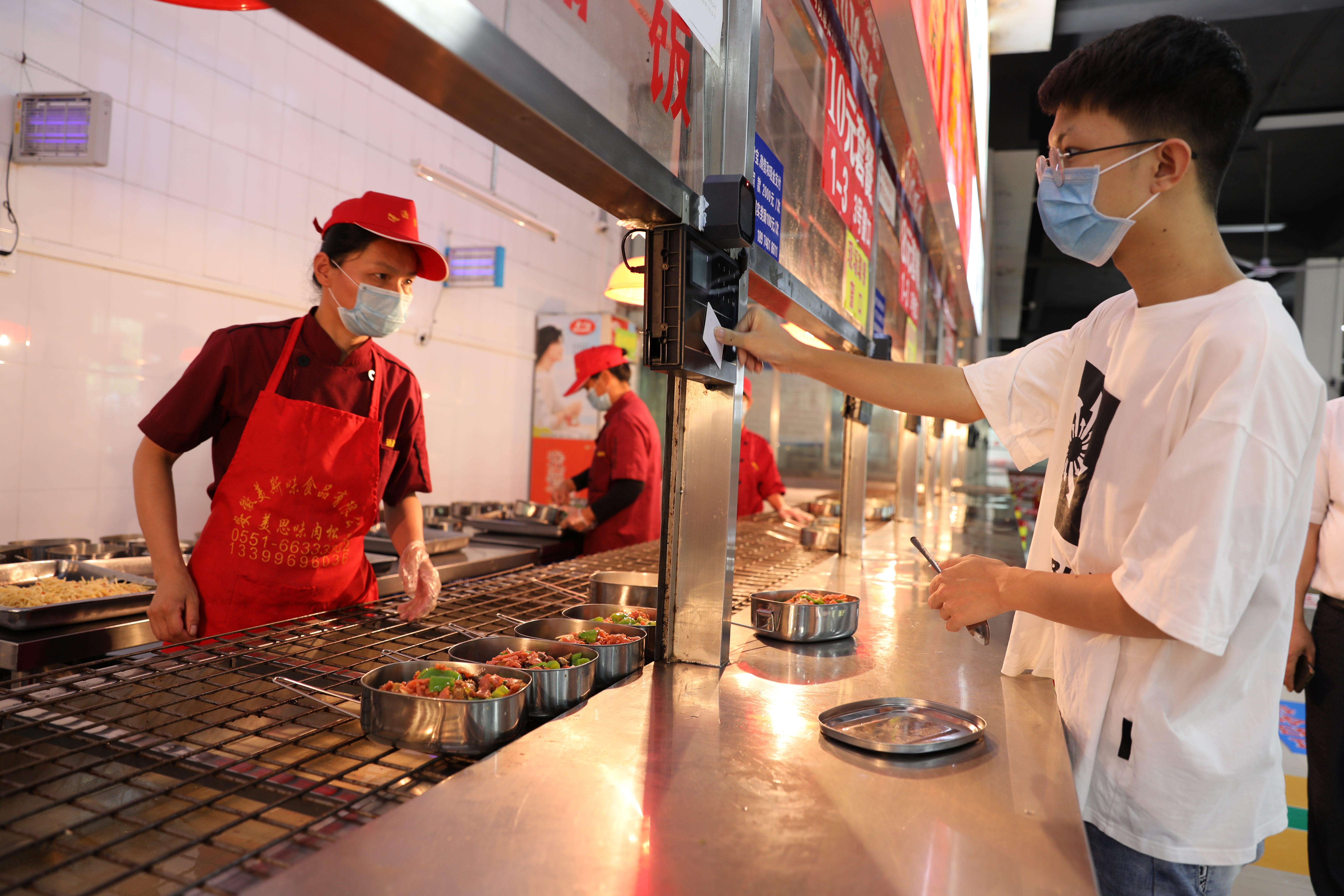 学生在刷卡取餐