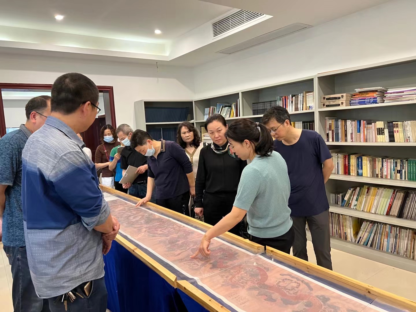 蒋艳萍一行参观考察了国学研究院地方文献展览室、九疑古琴坊、摩崖石刻拓片坊、潇湘汉服设计体验与缝制坊、学术成果展,详细了解了国学研究院成立以来的办学模式以及服务地方文化取得的系列成绩。参观期间,蒋艳萍一行认真听取了九疑古琴派经典古琴曲目,了解九疑琴派的来龙去脉;在潇湘汉服设计体验与缝制坊,蒋艳萍对手工缝制汉服赞不绝口,现场穿上手工缝制汉服,感受华服之美;在摩崖石刻拓片坊,蒋艳萍一行兴致勃勃地拿起拓片工具,现场体验省非物质文化遗产技艺。