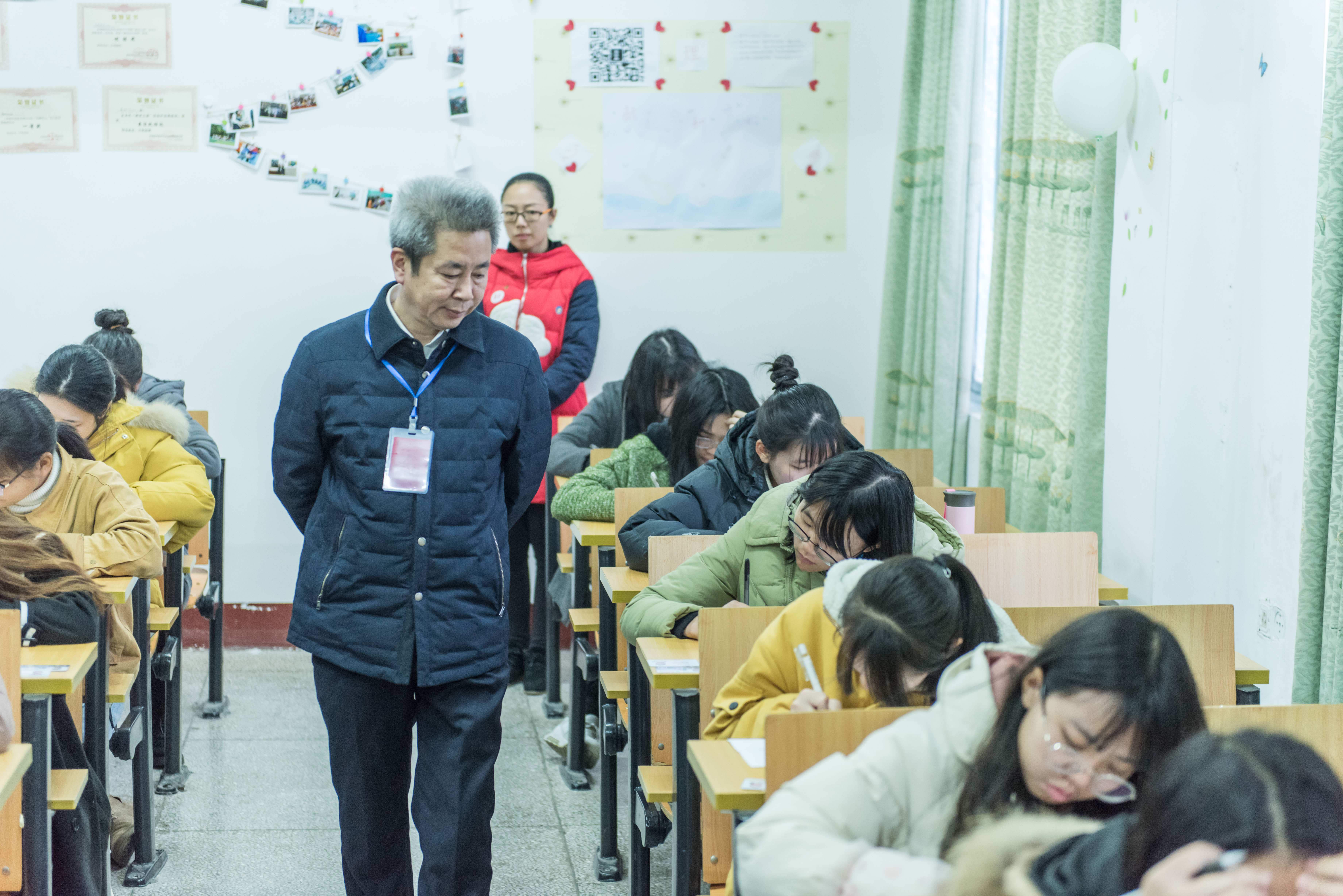巡考中,曾宝成和李钢针对考场布置、监考老师到位情况、考试纪律、试卷、考场设施、考场环境等进行了全面仔细地检查和指导。