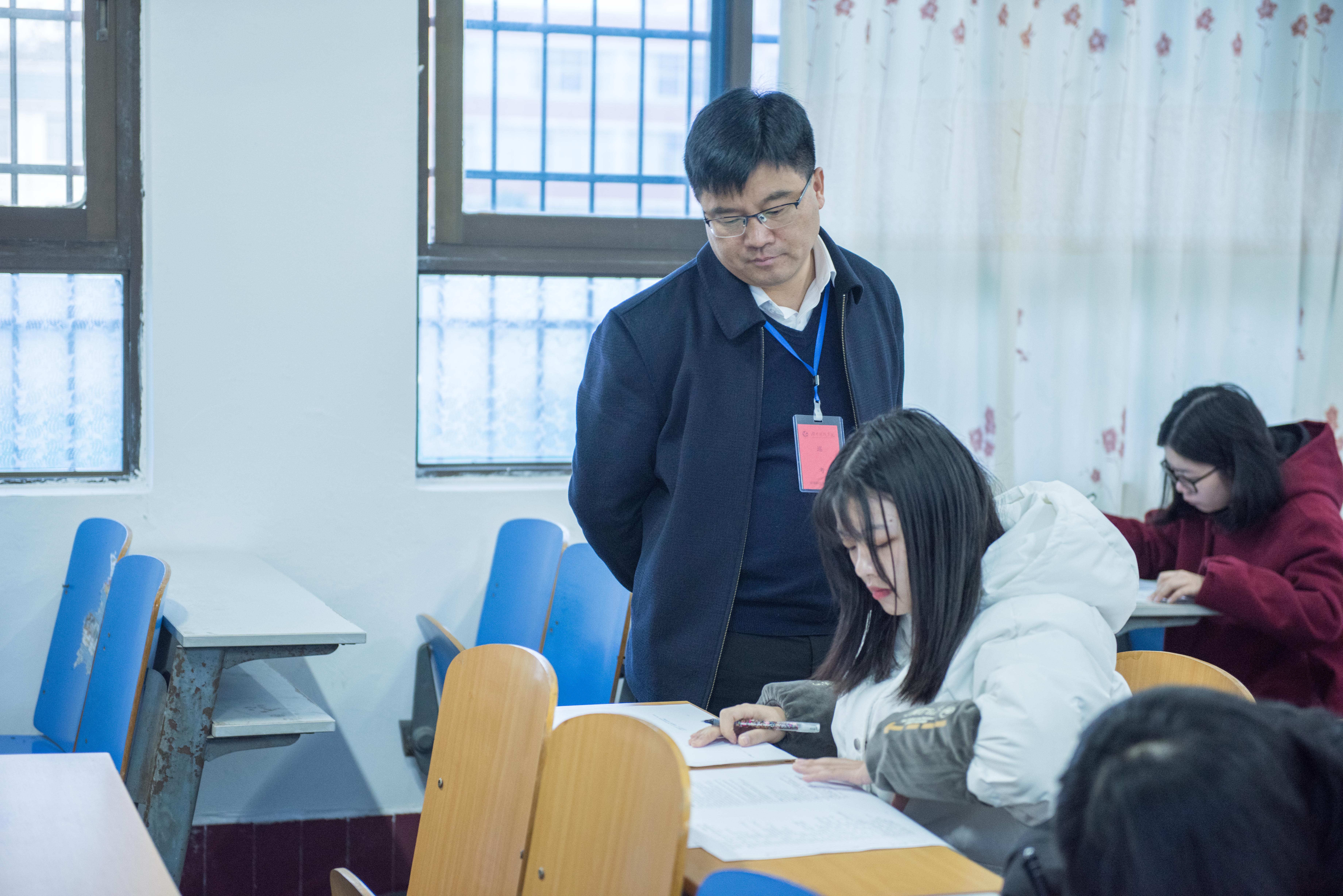 本网讯 1月2日,学校2019年下期期末考试正式拉开帷幕,党委书记曾宝成、校长李钢在教务处相关负责人的陪同下深入各教学学院进行巡考。