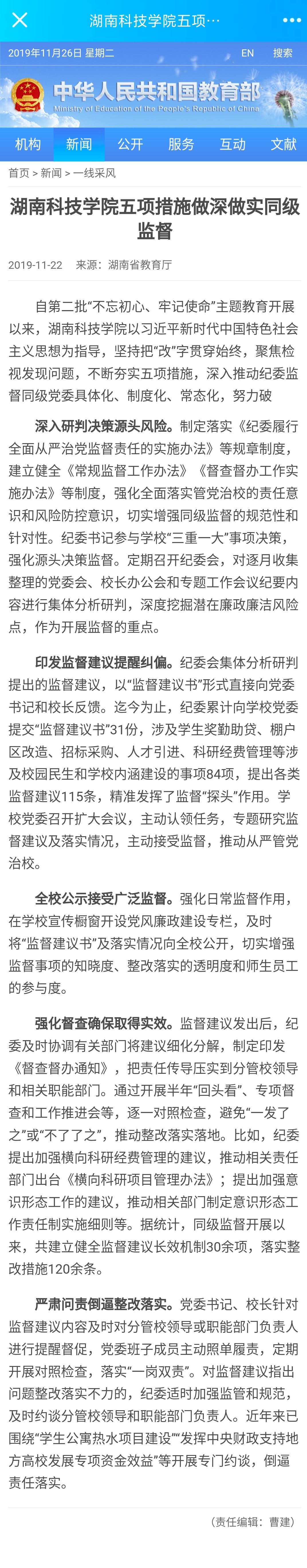 本网讯 11月22日,教育部官网以“华体会官方版网站登录入口五项措施做深做实同级监督”为题,推介我校做深做实同级监督工作经验。