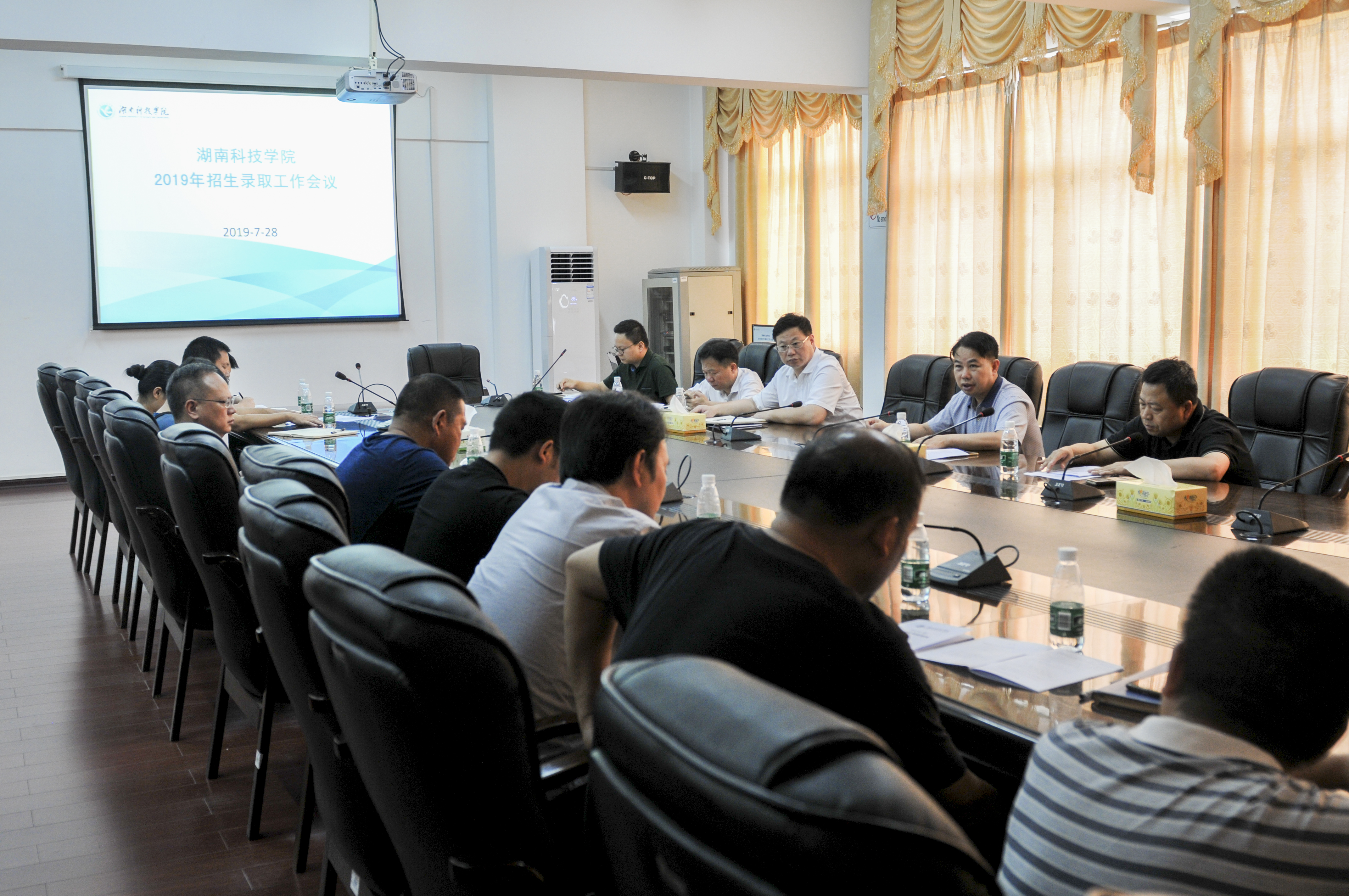 本网讯 根据湖南省教育考试院《关于做好2019年普通高等学校招生录取工作的通知》文件精神, 7月28日下午,学校召开2019年招生录取领导小组工作会议及录取工作协调会,学校招生工作领导小组全体成员、相关职能部门负责人、各院录取工作人员,会议由副校长李常健主持。