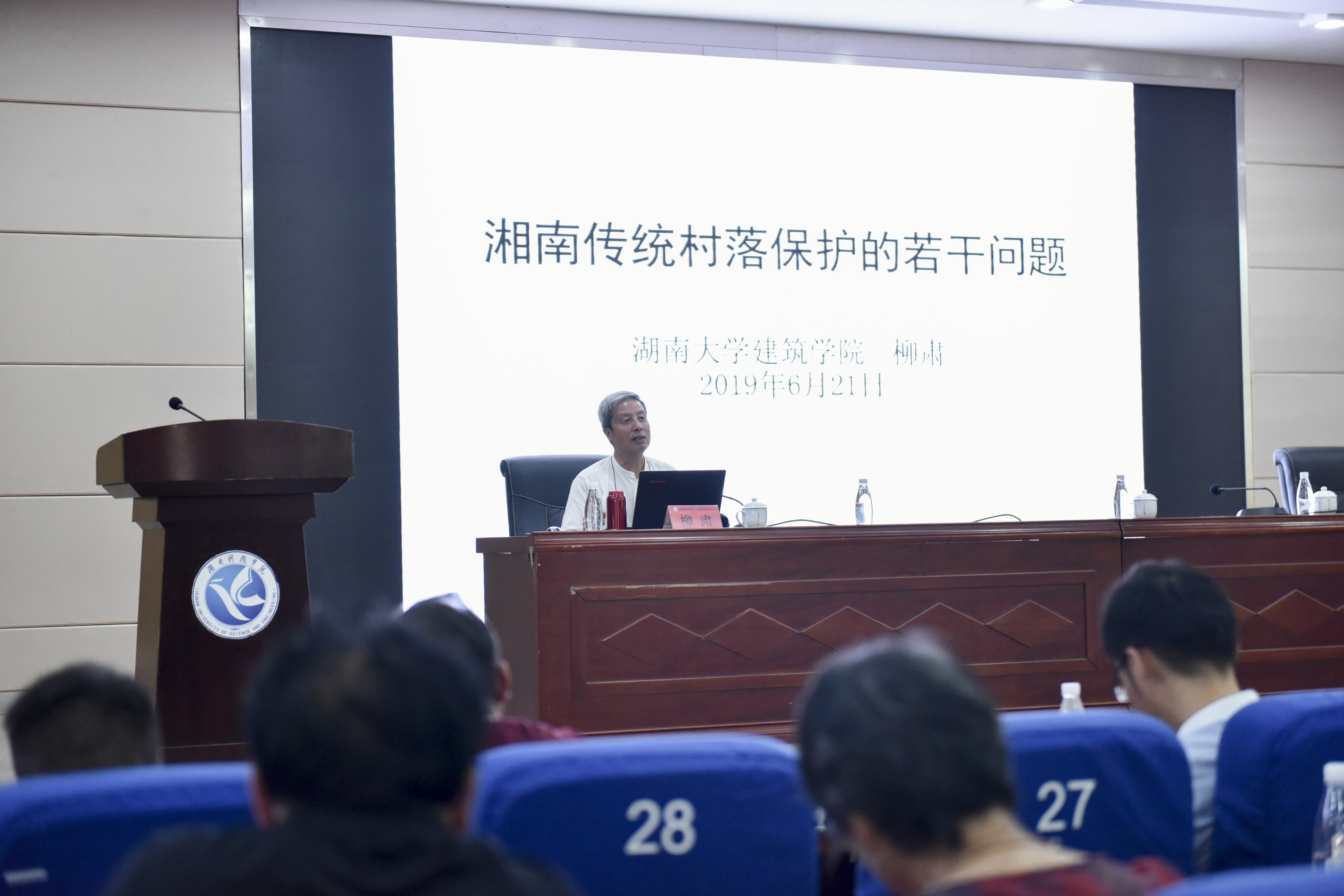 柳肃作题为《湘南传统村落保护的若干问题》的报告。他强调,历史城镇村落的保护问题多年来一直是学术界探讨的重要问题之一。保护传统村落,首先就是保护它的原真性。他具体阐述了世界文化遗产保护的两条重要原则:历史的原真性和生活的延续性及相关事例,指出古村落古建筑保护现存的问题,并提出切实可行的解决措施。