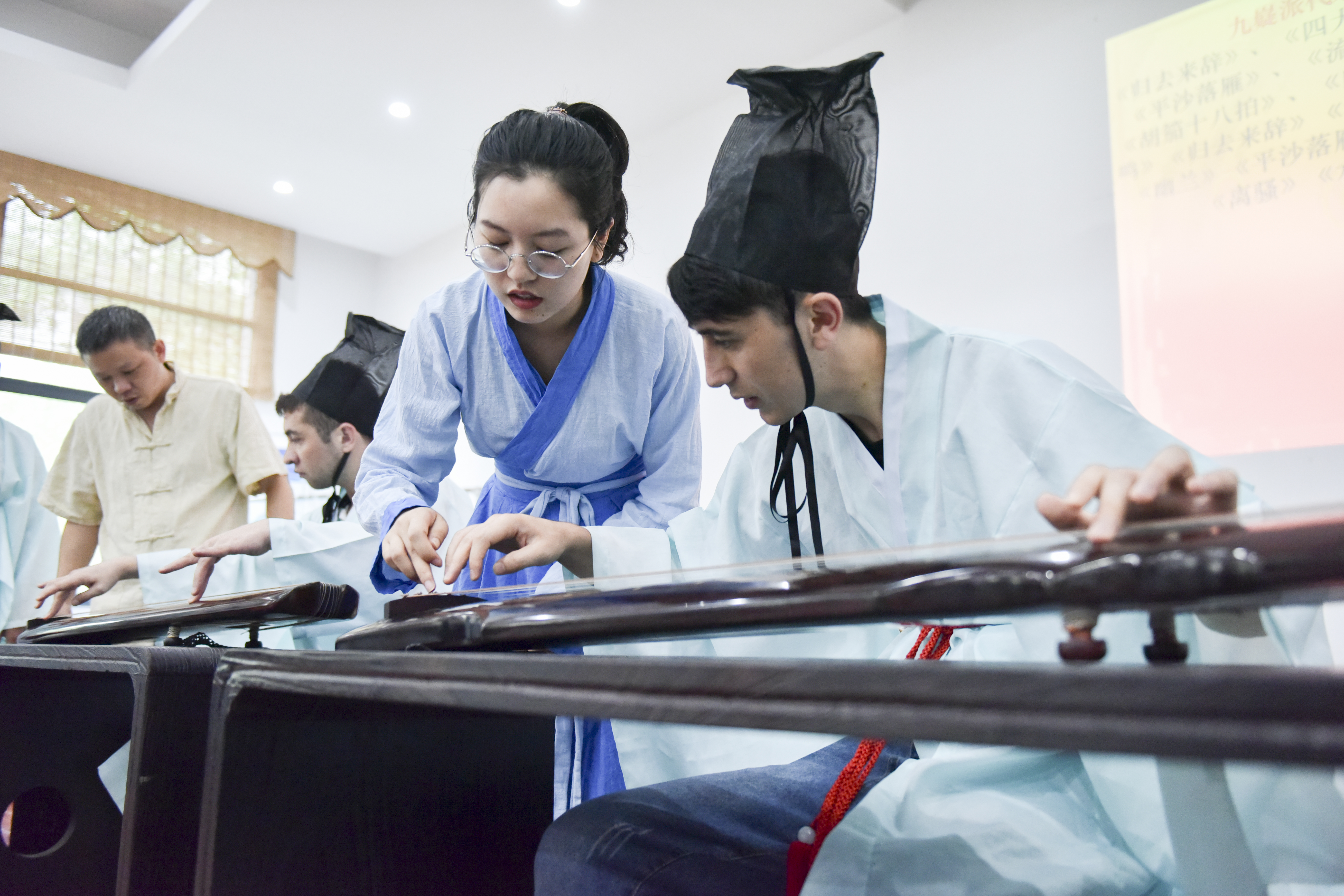 古琴课上,老师给留学生们说起了古琴的来源和发展,虽然,留学生的中文说得很流利,但是对于一些历史和古琴的专业词汇,听来满是疑惑。