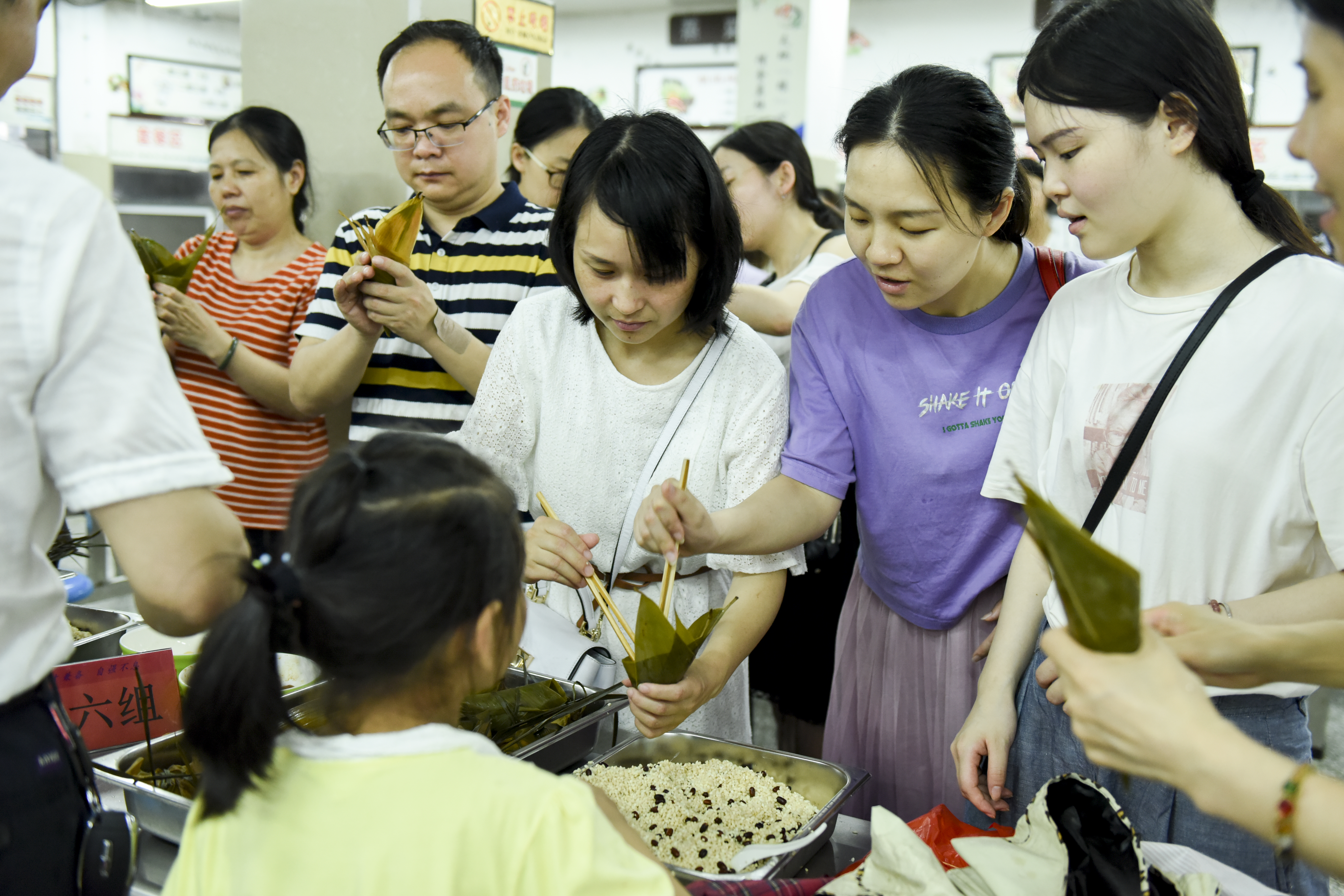6月6日,华体会官方版网站登录入口食堂,教职工在包粽子。当日,华体会官方版网站登录入口机关分工会举办端午节包粽子体验活动,教职工们自购食材,一起包粽子、煮粽子、吃粽子,增进感情交流,感受民俗文化,共度端午佳节。