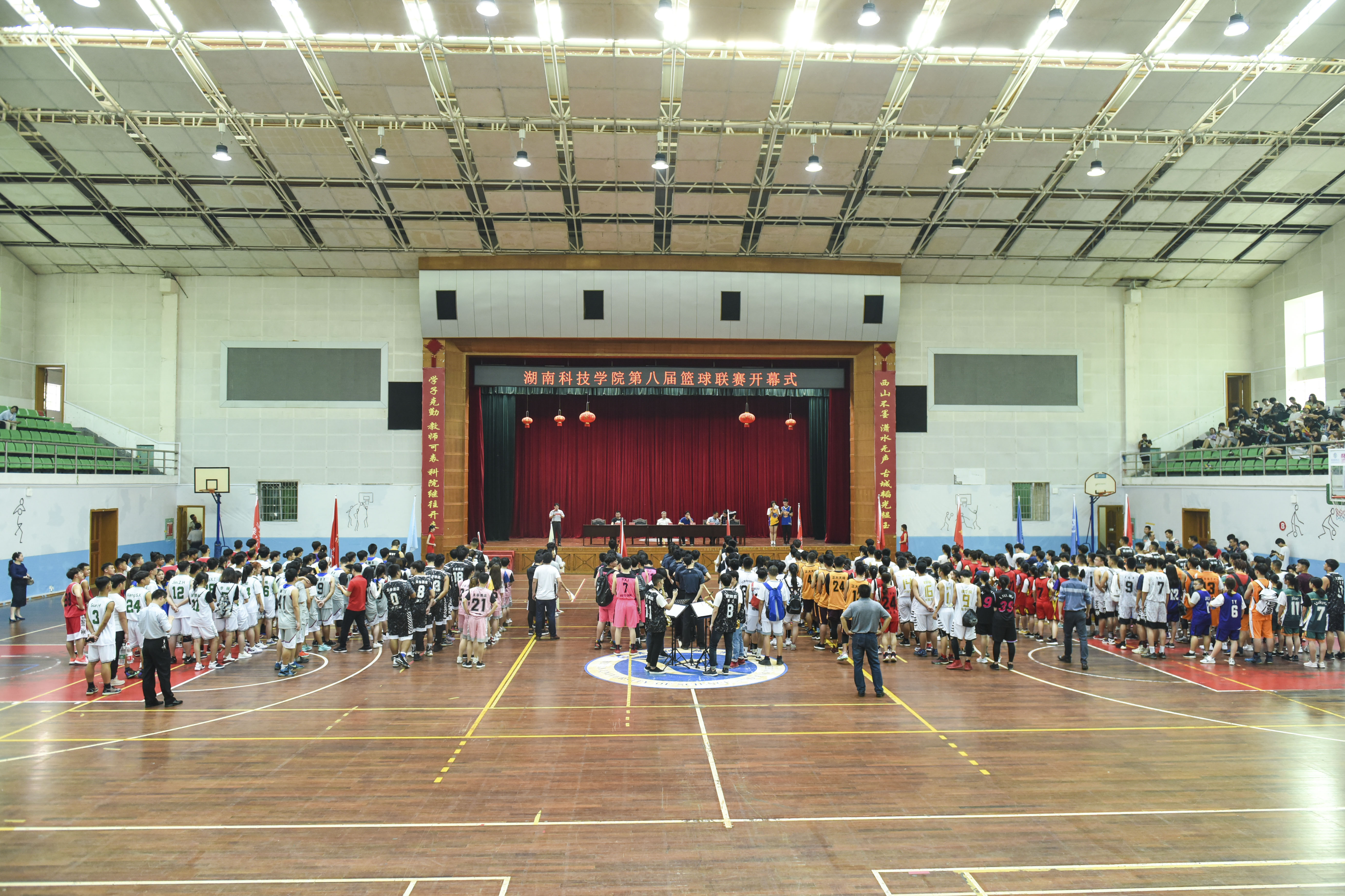 随后,曾宝成宣布学校第八届篮球联赛开幕。