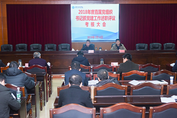 本网讯 1月14日下午,学校举行直属党组织书记抓党建工作述职评议考核大会。党委书记、校长曾宝成,校领导唐艳明、宋宏福、彭立威、郑山明、李常健、吴小林、程智开,党委委员、组织部长何福林,党委委员、宣传部长杨涛,各直属党组织负责人,党群部门负责人共40余人参加会议。
